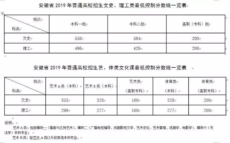 安徽2019高考分数线已公布,详情如下: