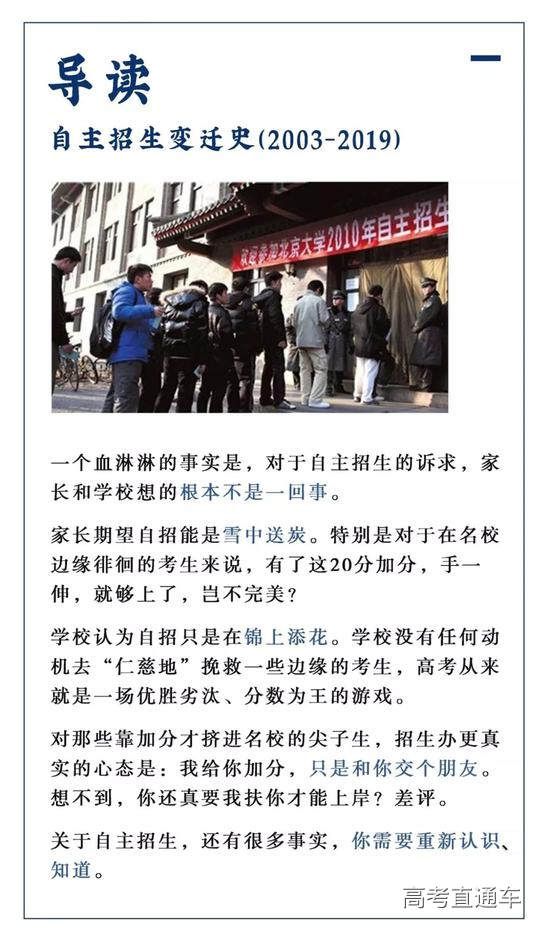 如此一来,能通过自主招生这根独木桥的,只有那些实打实的尖子生、政策优惠人群(如几大计划)、专才偏才(极少量,一直存在)和有含金量的竞赛获奖者。自招受惠人数相比巅峰期少了很多,未来可能要回归5%以下的合理区间。