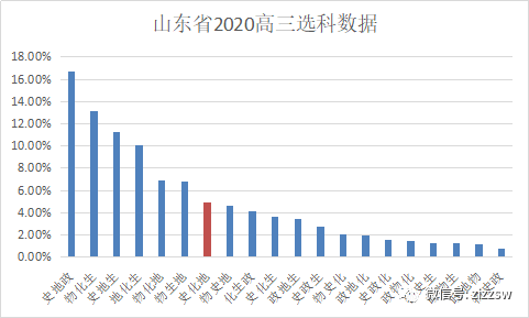 “3+3”模式下,考生可在20种组合中选择,史化地受欢迎度一般。以下为山东省2020届高三选科数据情况,史化地组合选考排名位列第7,选考热度不高,一般为文科中等成绩考生的选择。