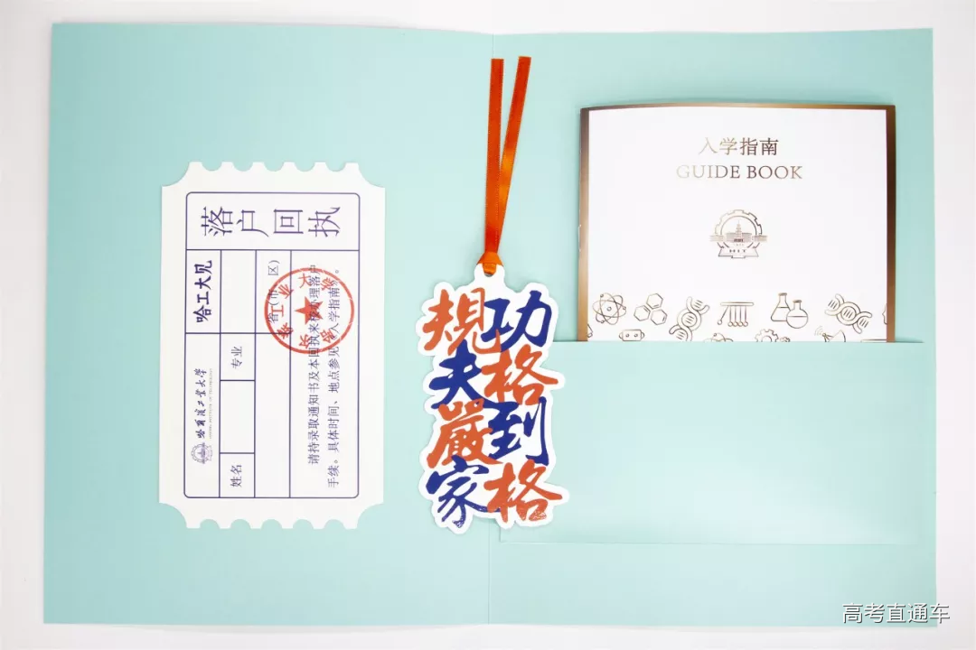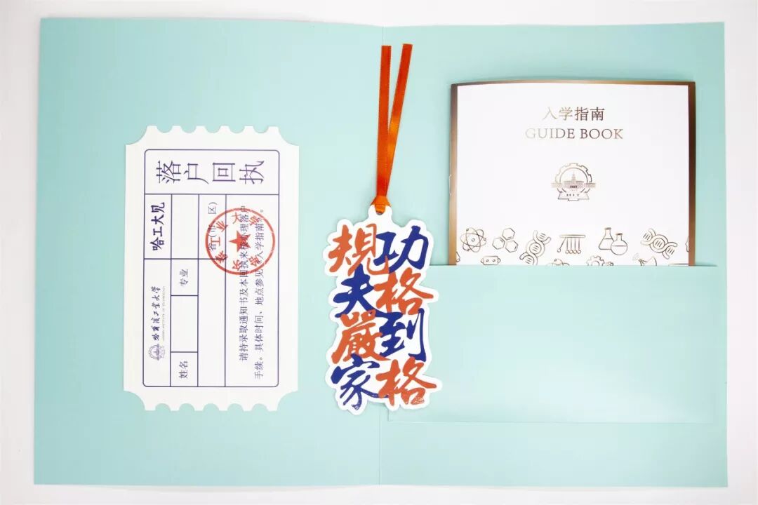 据本科招生办的老师介绍,今年的录取通知书的主题为“开·启”,由深蓝、浅蓝和红色三种颜色组成,分别象征校本部、威海校区和深圳校区。内附录取通知书、校长寄语、校训书签、新生入学指南1本(内集成高校本专科学生资助政策简介、大学生新生应征入伍宣传单、家庭经济困难学生认定申请表)、落户回执。通知书的背景图案由理工科的元素构成,并体现了哈工大的优势学科,如航天、机器人、计算机、生命科学等。用一句话概括,这套录取通知书不仅“有料”,还很有颜值!连小编都想收藏一套了!