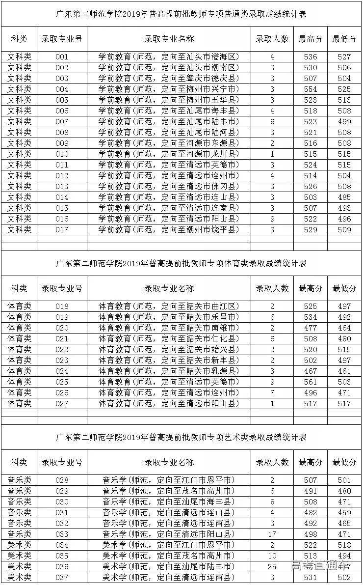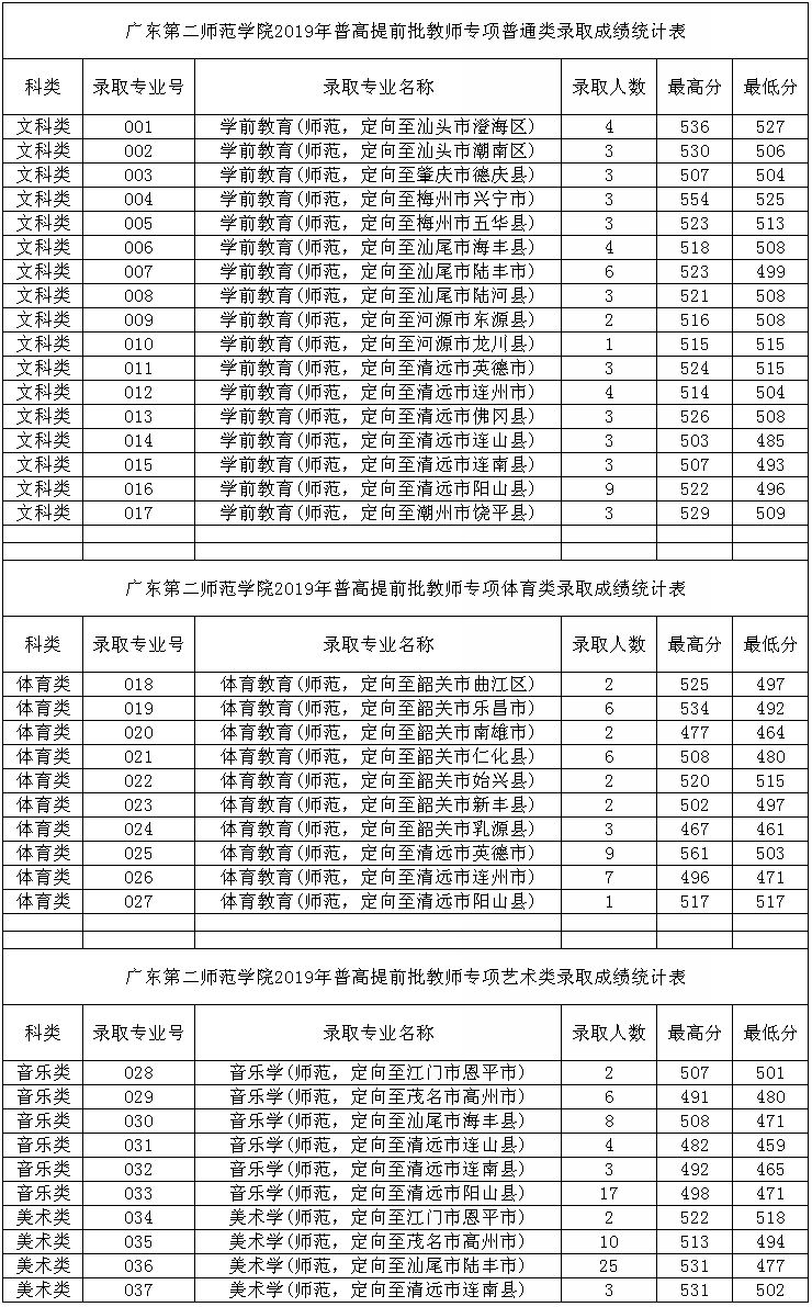 经广东省招生委员会审核通过,我校2019年普高广东省提前批教师专项普通类、体育艺术类录取已经全部结束。