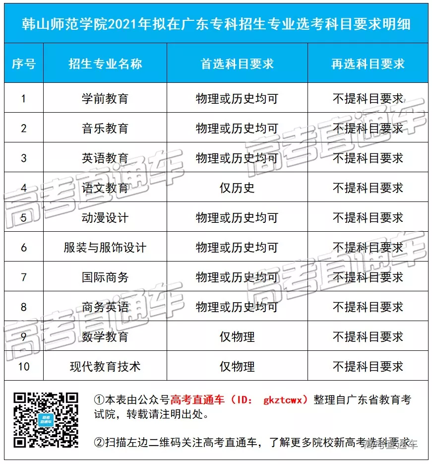 对于想考韩师专科专业的同学,无论选科如何,至少有80%的专业是可以自由报考的。