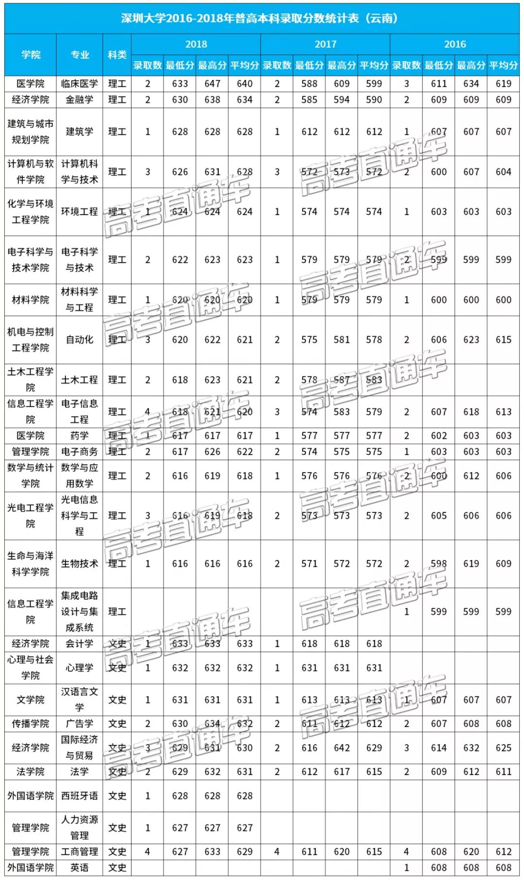 2018年,深圳大学录取最低分为598分,专业为文史类的法学和英语。录取最低分超四川2018年一本文科分数线(553分)45分!录取最高分为理工类的计算机科学与技术,最高分为639分。