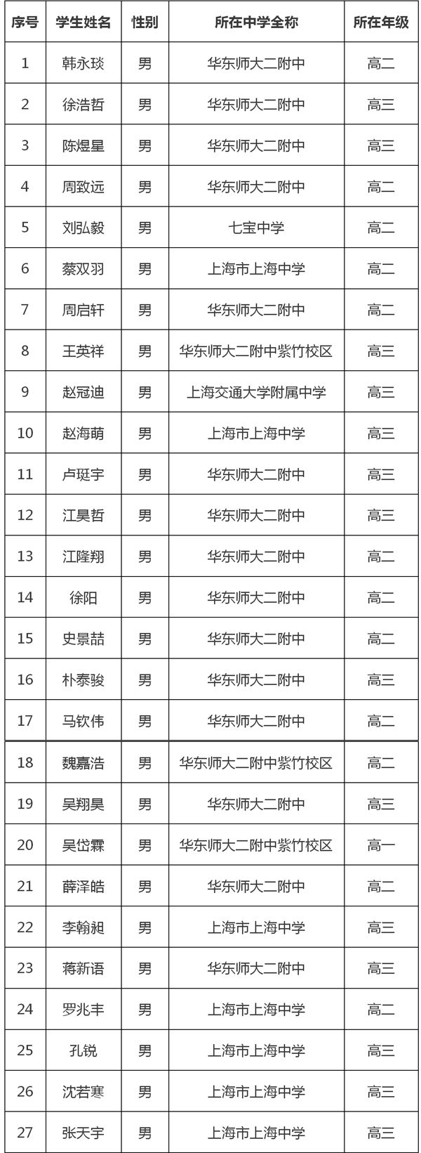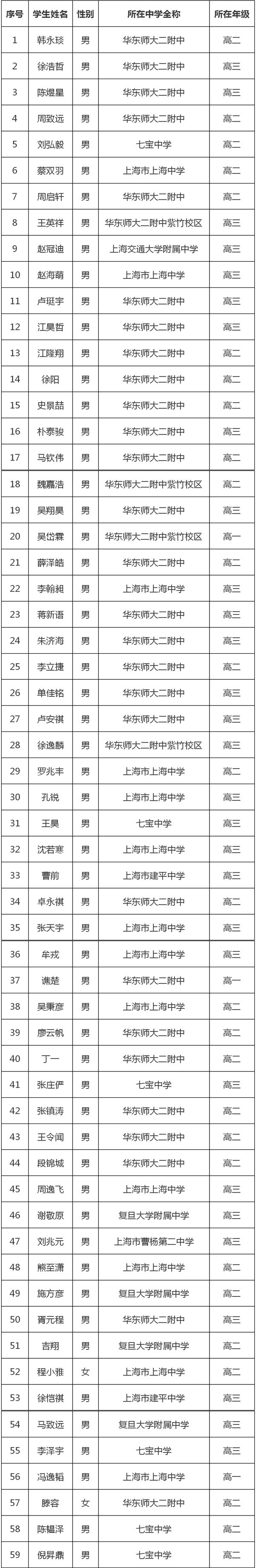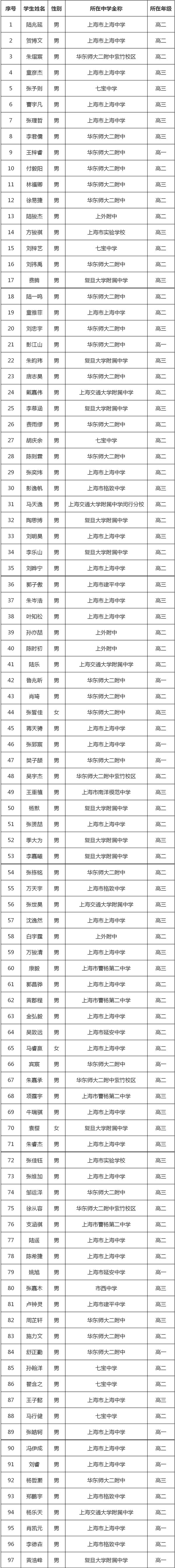 今天,上海物理学会公布了第36届全国中学生物理竞赛上海赛区获奖名单和参加全国决赛的学生名单公示,共321人获奖,其中一等奖59人,二等奖97人,三等奖165人;其中有27人参加第36届全国中学生物理竞赛决赛。