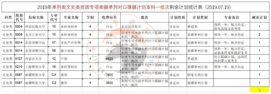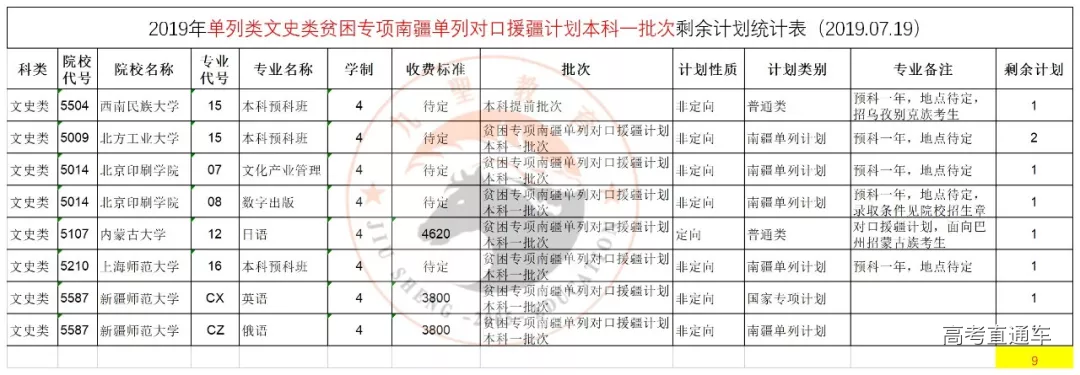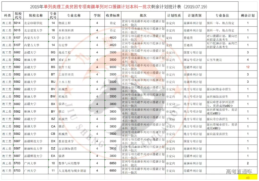 根据录取日程安排,自治区教育考试院将于7月19日8时至18时,单列类计划本科提前批次和贫困专项、南疆单列、对口援疆计划本科一批次未完成计划征集志愿,7月20—21日投档、录取。