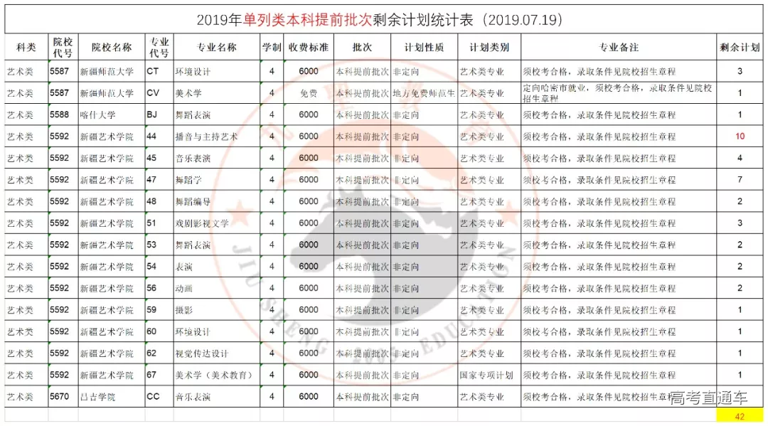 单列类第一次征人数总计94人,其中艺术类42人,文史类9人,理工类43人。特别注意的是本科提前批新疆艺术学院的播音与主持专业招10人,新疆大学的软件工程(南疆单列计划)招12人!这两所学校是此次征集名单里征集人数最多的院校!符合条件的考生报考录取几率大!疆外院校有北京建筑大学、北京印刷学院、广州大学、内蒙古大学、西南民族大学、北方工业大学、上海师范大学7所院校在此次征集名单内,但招生人数都是1-2人。