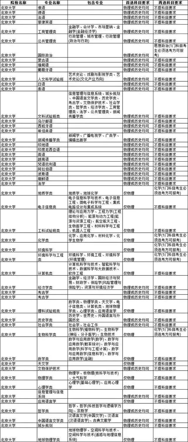 从表格中,可以清晰的看到,首选物理基本上可以选择所有专业,首选历史仅占2.83%。从部分高校的要求上来看,物理的选择会更多,相比较部分专业要求的前提下,主流选科还是以物理+化学、历史+政治为主流选项。
