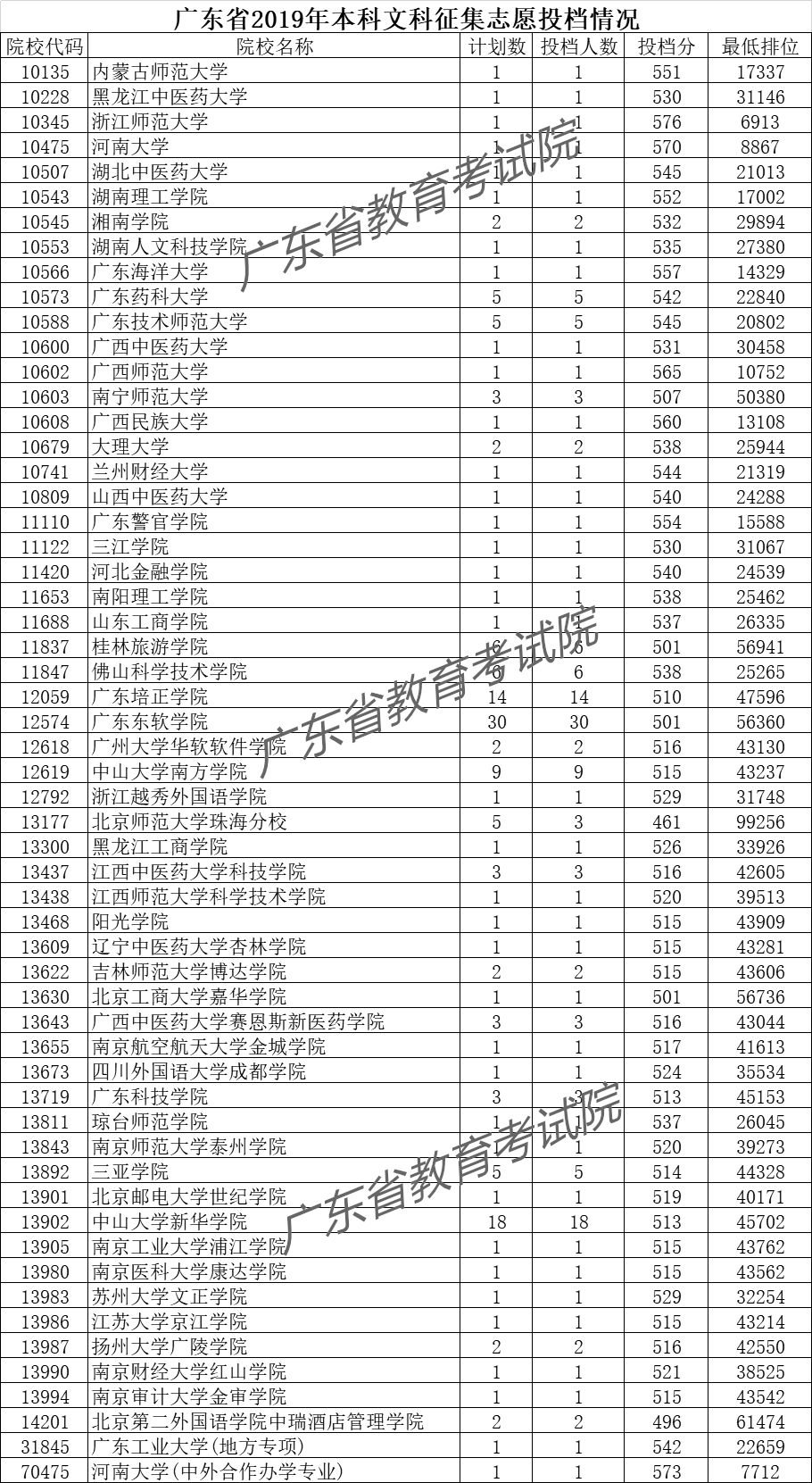 其他各类投档线详见:广东省2019年本科征集志愿投档情况(文/理/体育/美术/音乐/舞蹈/编导)