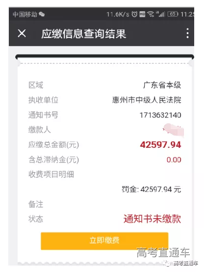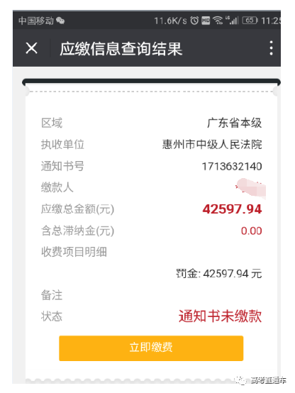 2.记得截图记录好页面的执收单位编码(名称)、缴款通知书号码信息: