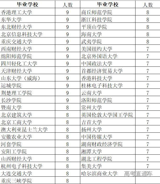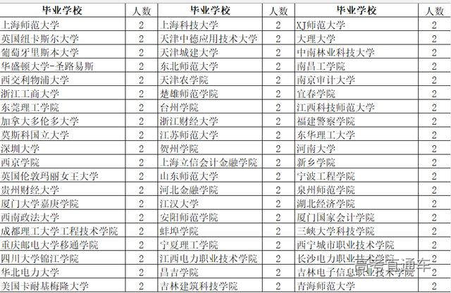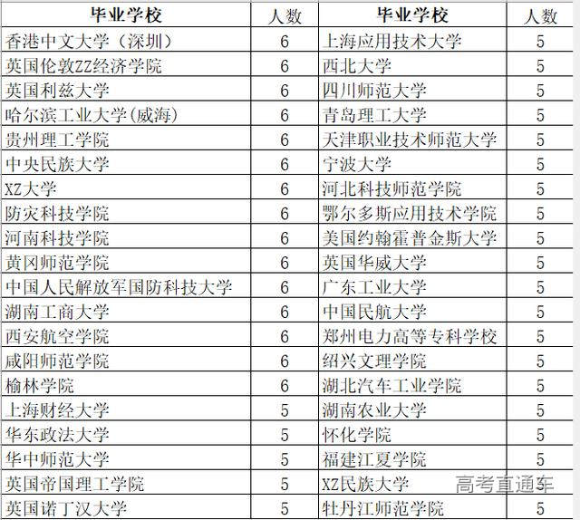 录用5人、6人的高校40所。哈尔滨工业大学(威海)6人,上海财经大学、华东政法大学、西北大学各5人。