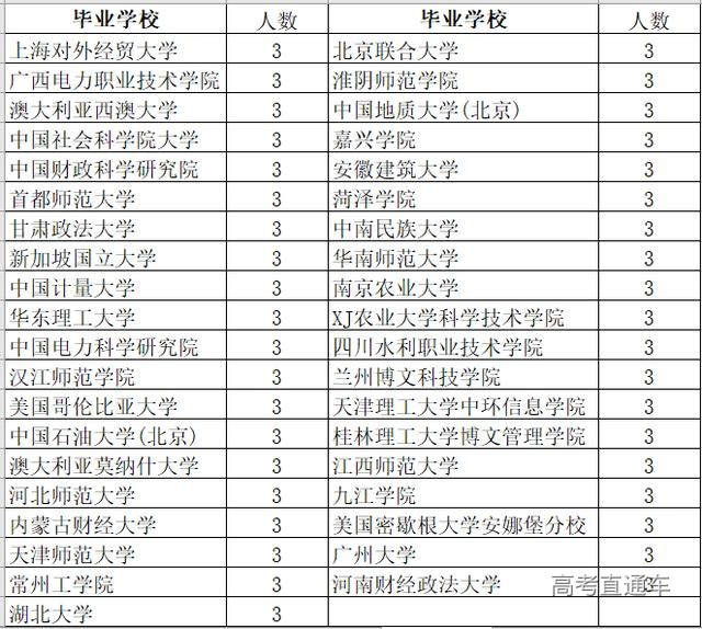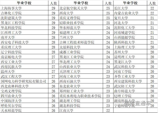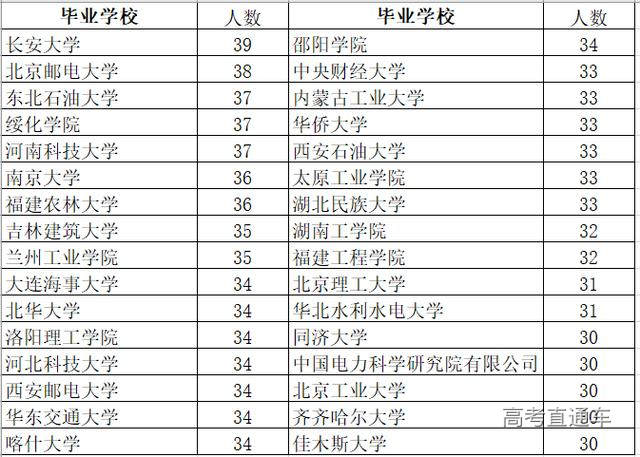 录用30人到40人之间的高校32所,长安大学39人,北京邮电大学38人,南京大学36人,中央财经大学33人,北京理工大学31人,同济大学30人。