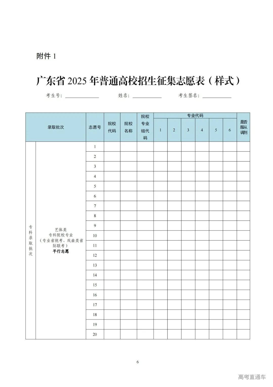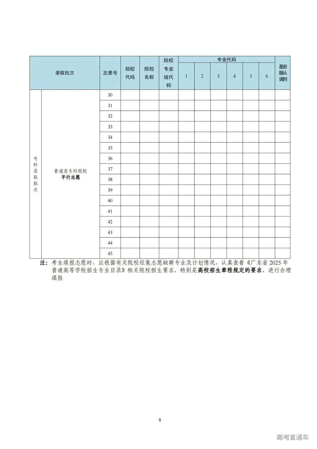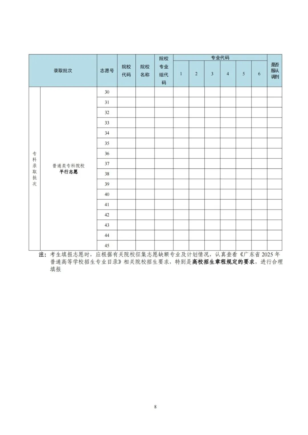 1.广东省2025年普通高校招生征集志愿表(样式)