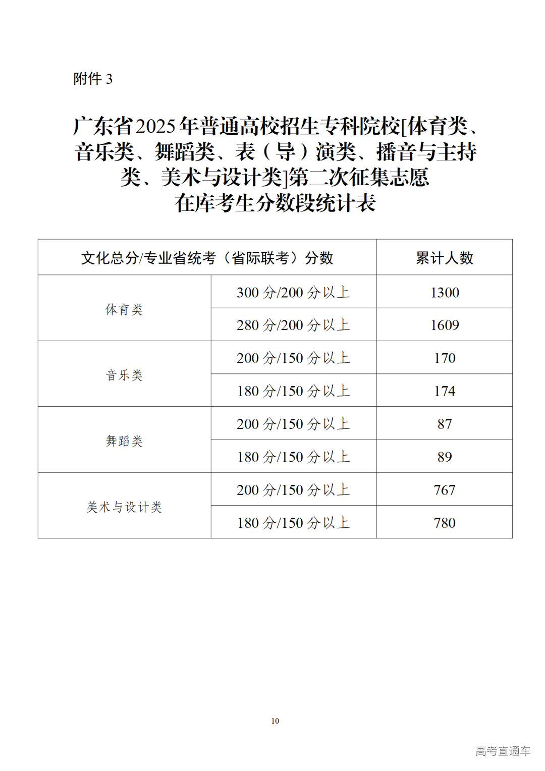 3.广东省2025年普通高校招生专科院校[体育类、音乐类、舞蹈类、美术与设计类]第二次征集志愿在库考生分数段统计表