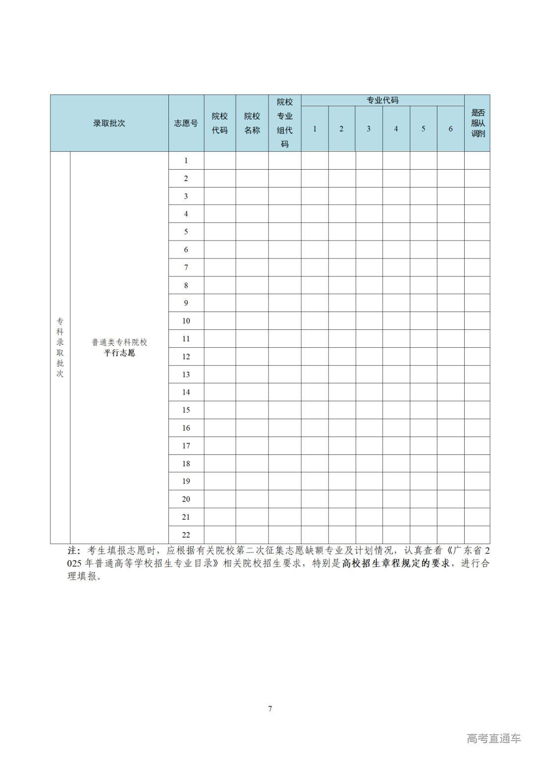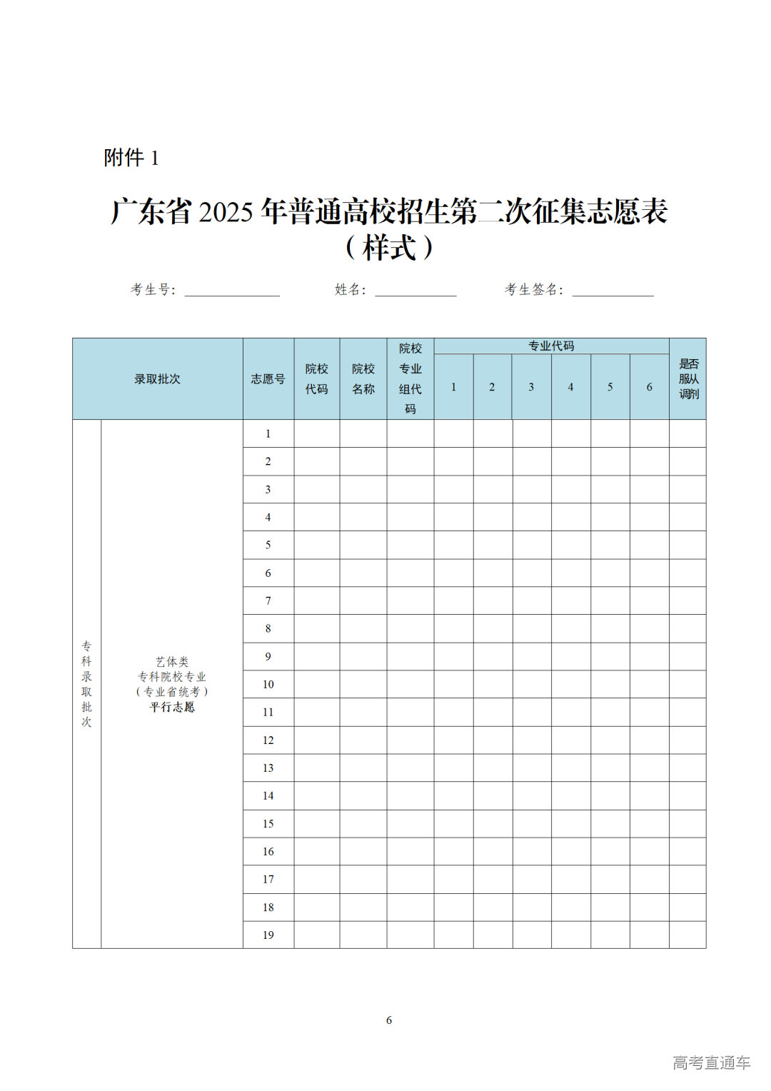 1.广东省2025年普通高校招生第二次征集志愿表(样式)