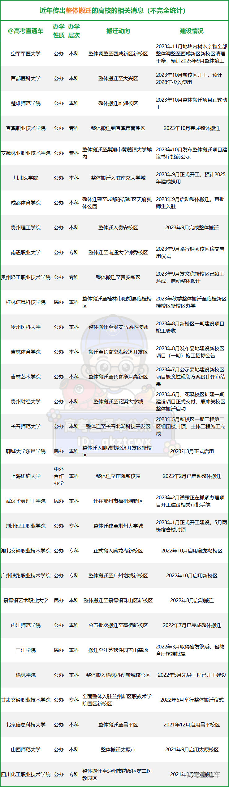 据不完全统计,2021年至今,已有30所高校,传出已完成或计划整体搬迁的消息。