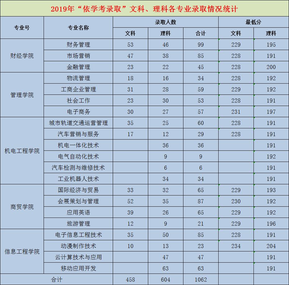 2019年广州科技贸易职业学院依据学考各专业录取分数一览表
