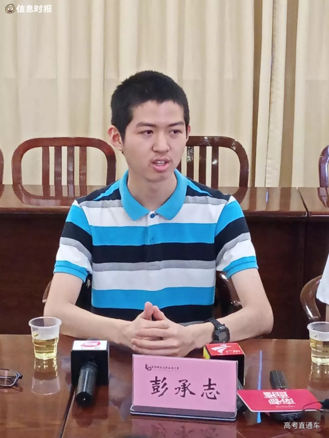 高分秘诀 谈到自己的高中生活,他说:“高中3年是一个很漫长的过程,中间也有很多不开心的时候,最重要的是要去体会自己学习努力中的那些快乐。” “高中主要是刷题,很容易让自己屏蔽掉一些事情”,谈到高中生活中令自己印象深刻的人,彭同学说,“我觉得我们班同学,每一个都有自己的特点,比如我的一个同学,临近高考的时候拿了一个悠悠球来班里玩,然后这个游戏就在我们班盛行一时,成为我们班下课后一个非常热闹的活动。”虽然没有参与,但这位同学和这件高考前的插曲让他印象深刻。 爱好兴趣 “一个是喜欢长跑,还有一个就是喜欢看一些英文书。”彭同学说,随后还列举了他读过的书目,“一些文史哲的经典,比如说《悲惨世界》、《战争与和平》。”而对于当下的潮流,《权力的游戏》(即《冰与火之歌》)这类的热门书籍,彭同学表示自己没有读下来。 大学和专业 对于自己的大学专业,彭同学认为要以自己为主:“要以自己的性格、爱好为主,父母对一些专业有了解,也能够给我提供一些经验和建议。”
