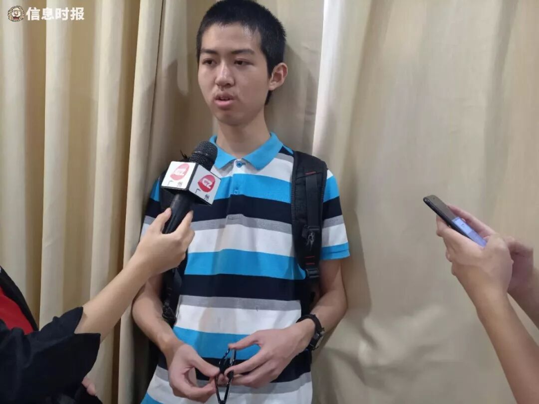 胡浩宇是华南师大附中高三一班理科班的学生,他介绍自己是在毫不知情的情况下被叫来“开会”的。据悉,今年华师附中有8人为全省前50,虽然他在10点30分左右还不知道自己的成绩,“但他叫我过来,肯定是因为考得比较好,所以我也不知道怎么去描述这种心情”。