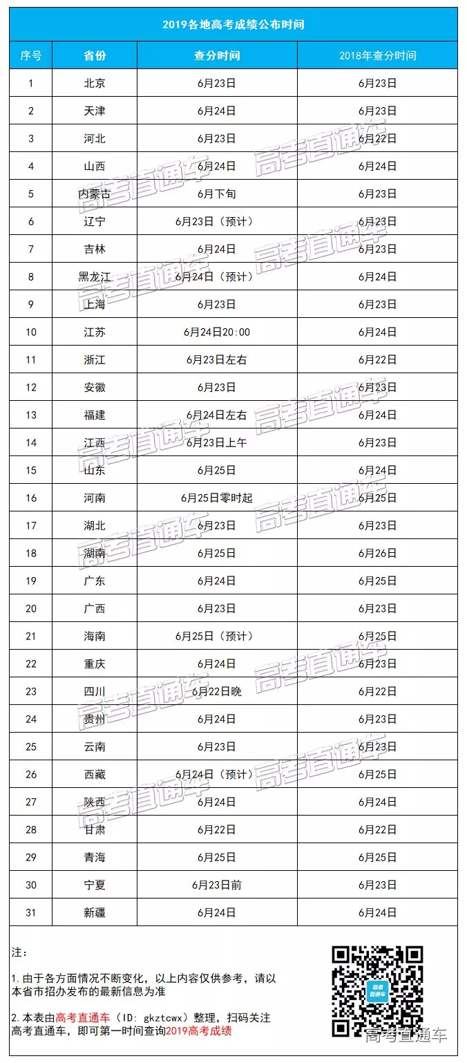 小车整理了各地最新高考查成绩时间表,快看看你什么时候可以查分!