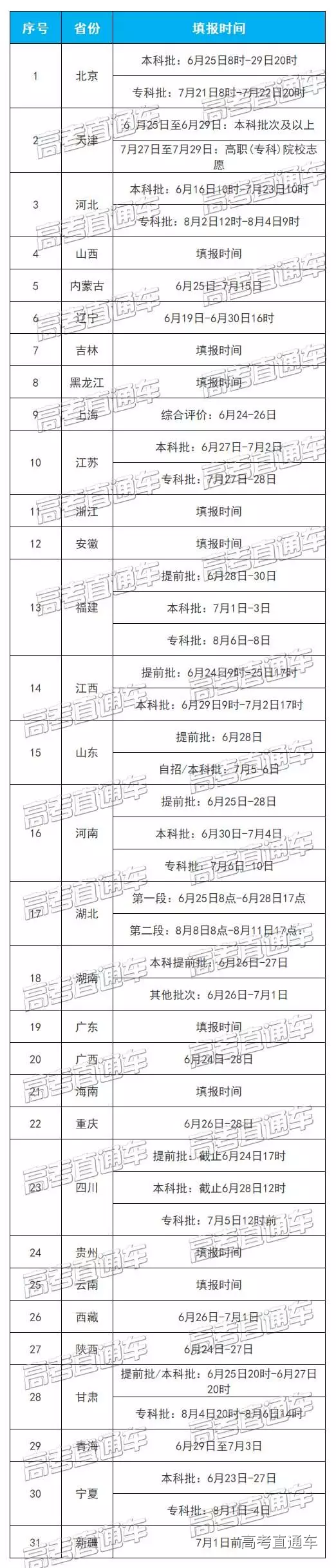 与此同时,也有省份将所有批次的志愿填报规定在统一时间。例如,西藏就设置所有批次志愿统一在6月26日至7月1日填报。