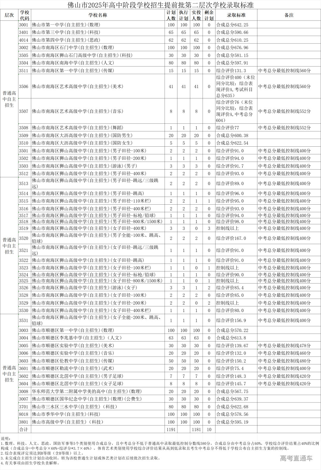 2025年佛山市高中阶段学校招生提前批录取控制分数线及学校录取标准如下。预计考生可在7月20日晚登录中考信息管理系统查询录取结果。