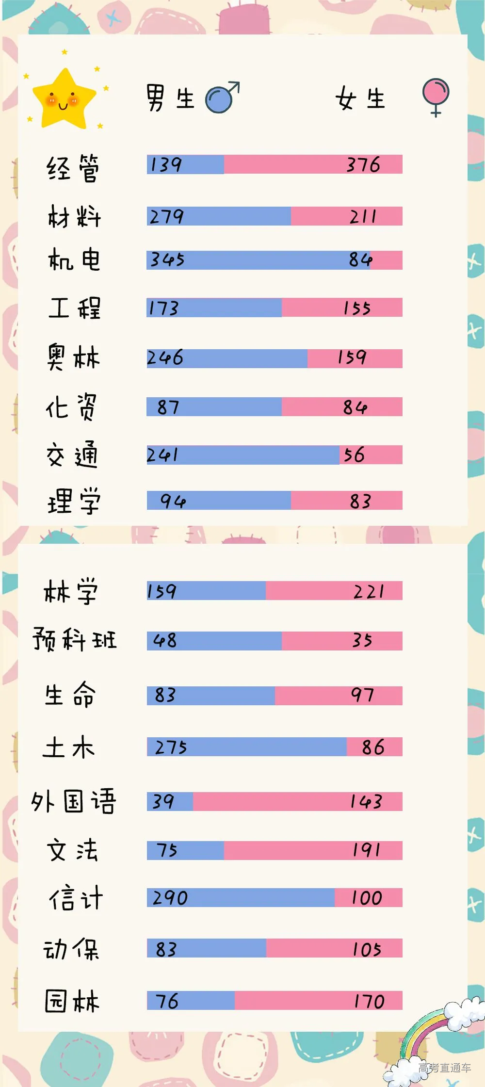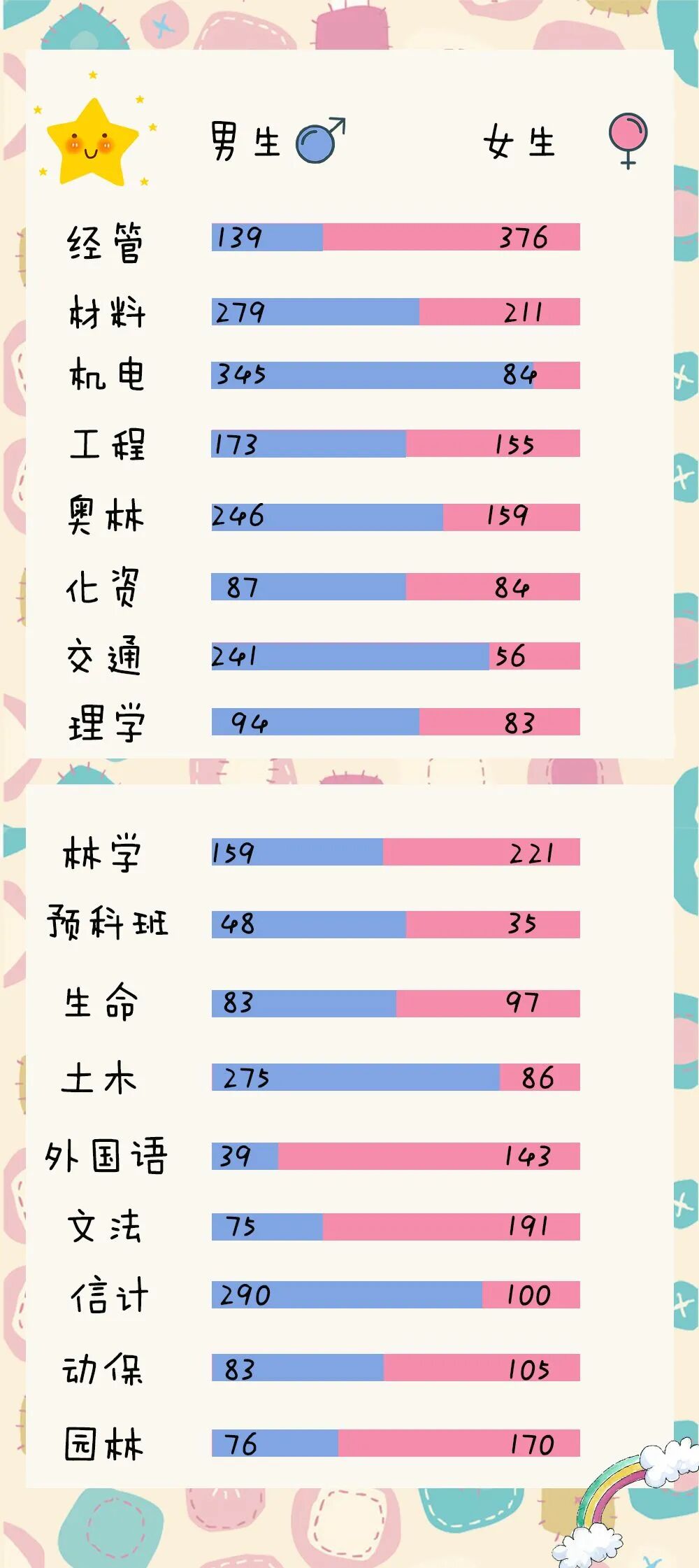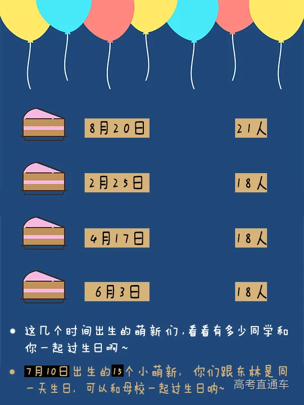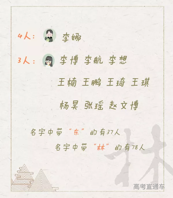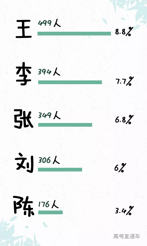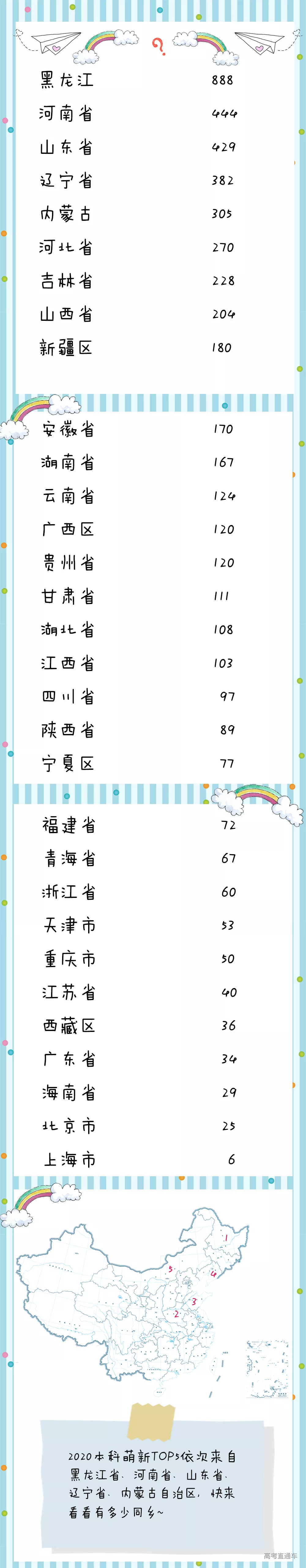 2020级本科生录取总人数为5088人, 来自31个省、市、自治区, 2292所高中。 男女比例如何? 在2020级新生中, 来自黑龙江和河南的人数最多, 分别为888人和444人, 萌新们找到自己的老乡了吗? 看完这篇推送, 名字里有“东”和“林”的同学记得点个在看! 李娜、李博等同学可以在评论区报个到~ 有21人同在2002年8月20日出生, 这是何等的缘分! 校庆日7月10日出生的共有15名同学, 和东林你同一天生日, 和母校一起过生日呀~ 不同民族同一家亲, 相遇即是东林人! 萌新中有多少名共青团员和中共预备党员呢? 还有哪所中学向东林输送的萌新最多? 这里有答案啦! 原来萌新中有这么多“小王”同学! 小李、小张、小刘、小陈也有庞大的队伍~ 还有些同学的姓氏非常稀有噢, 在2020级的萌新中独一无二, 快来看看你是不是幸运儿吧! 以上就是2020级本科生新生数据大汇总啦~ 希望各位萌新能够早日相互认识, 相互熟悉, 怀揣爱与期待, 秉持梦与勇敢, 与东林共同成长!