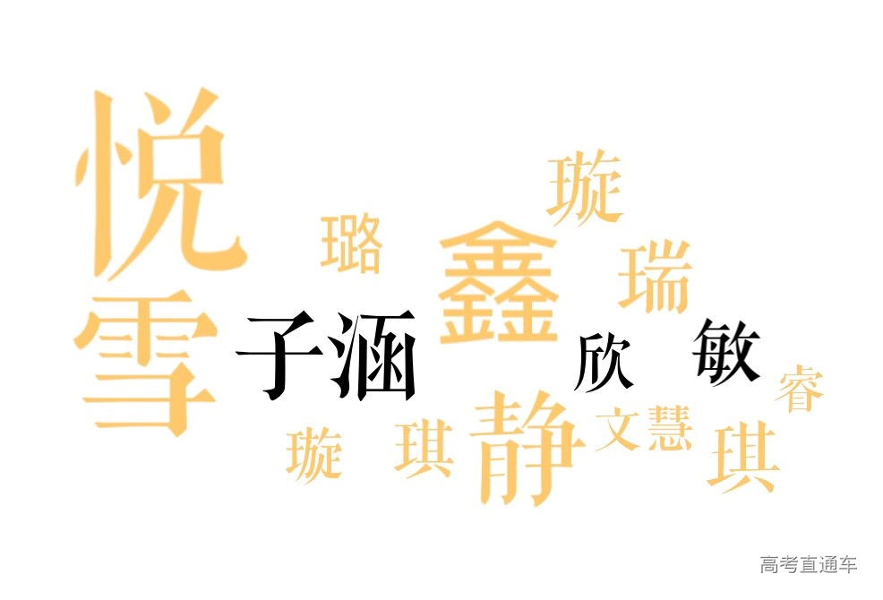 小萌新的名字中,悦、雪、鑫、静、子涵、瑞、璐、文慧、敏、琪、璇等字出现的频率极高。有6名新生叫刘畅成为新生中重名最多的人,叫王硕的学生有5名,紧跟其后,叫王悦、杨柳、刘倩、刘慧、王文慧、王颖的学生各有4名。