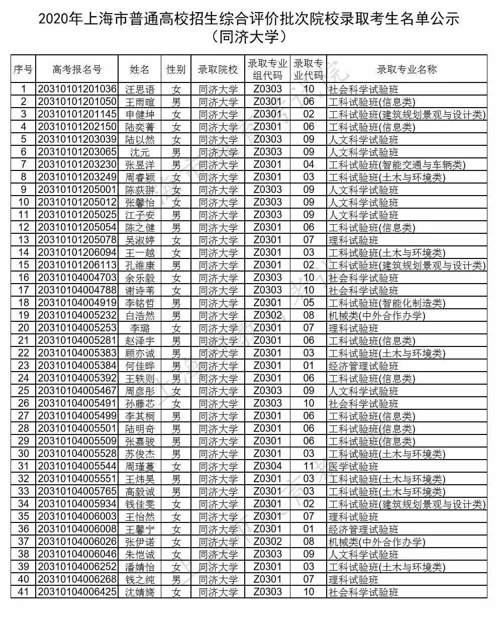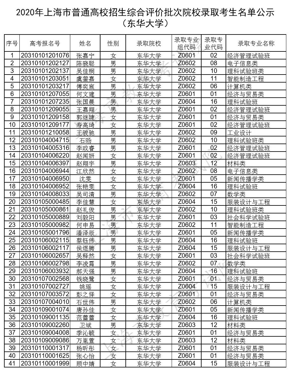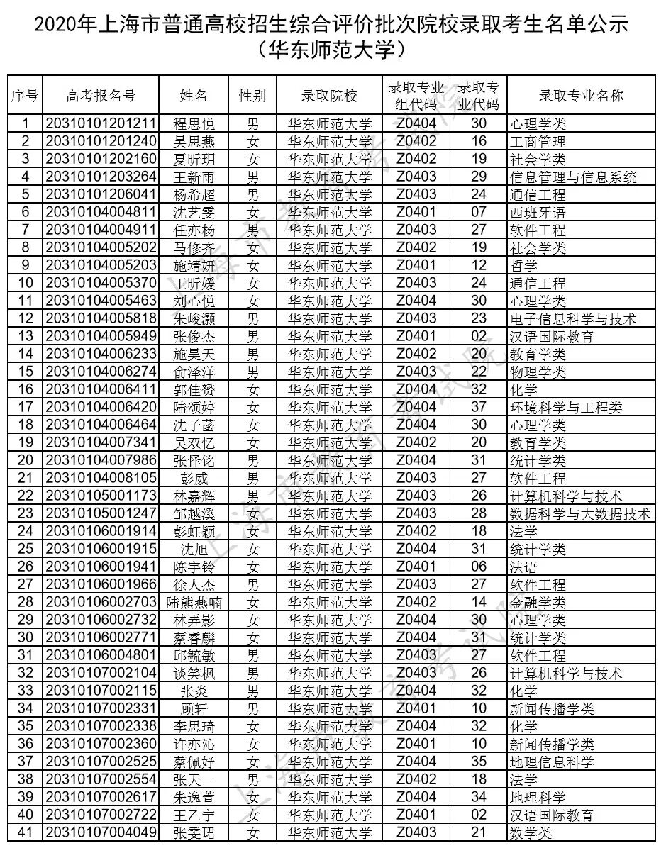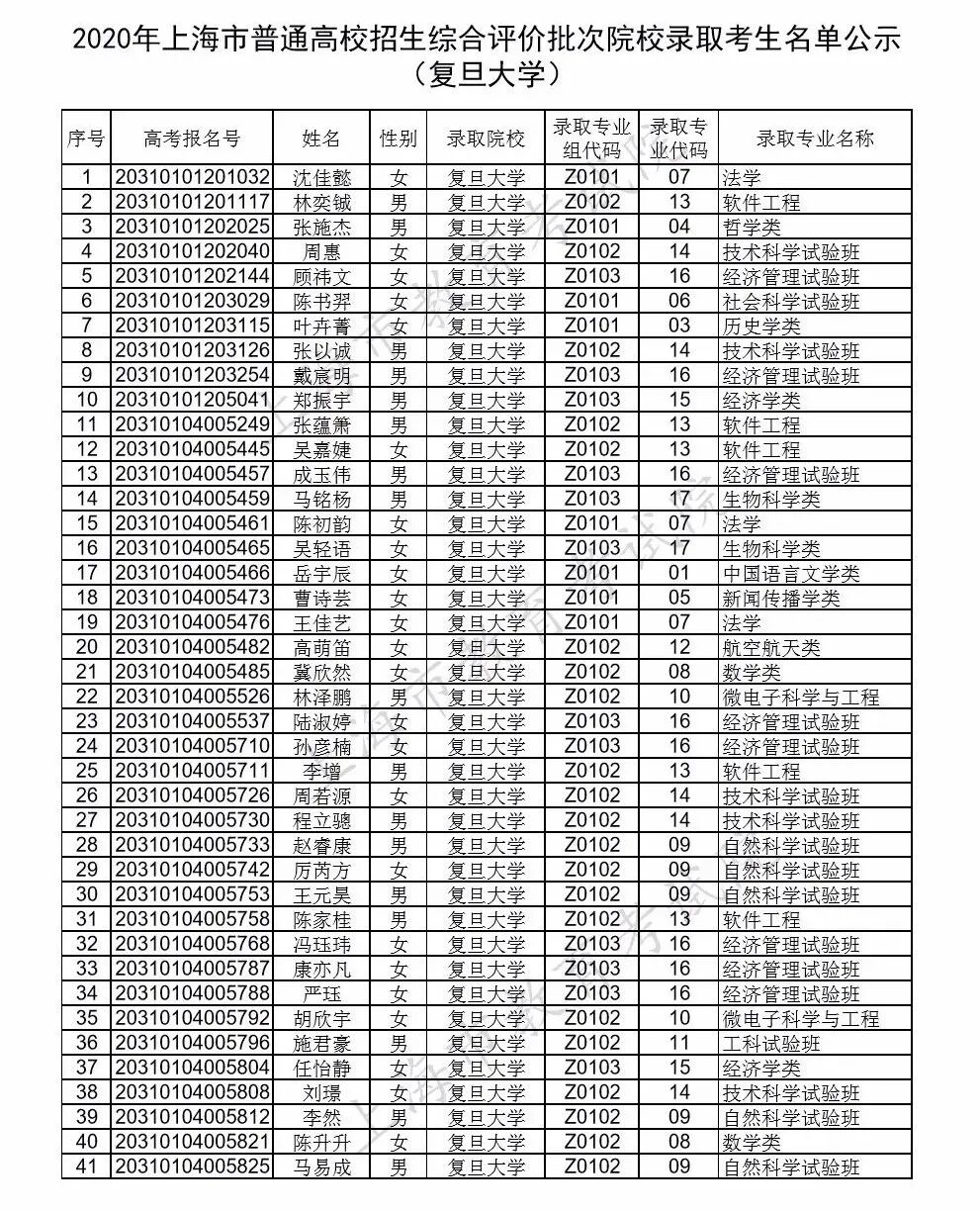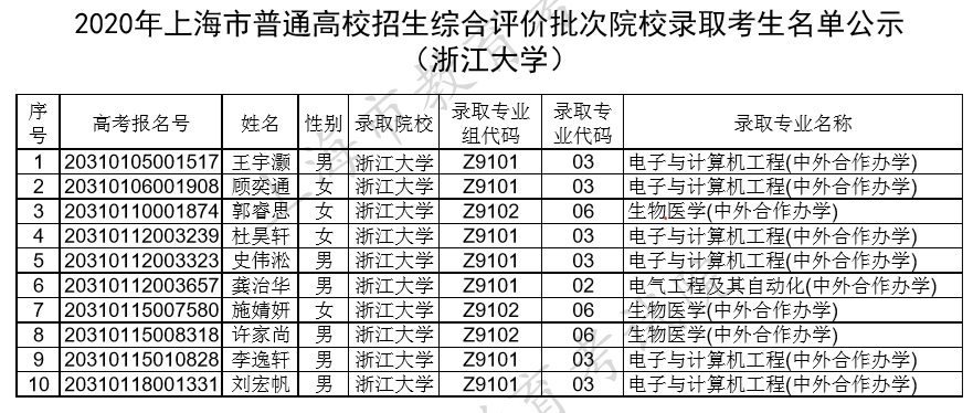 上海市教育考试院公布今年复旦大学、上海交通大学、同济大学、华东师范大学等校招生综合评价批次院校录取考生名单。详见下文↓