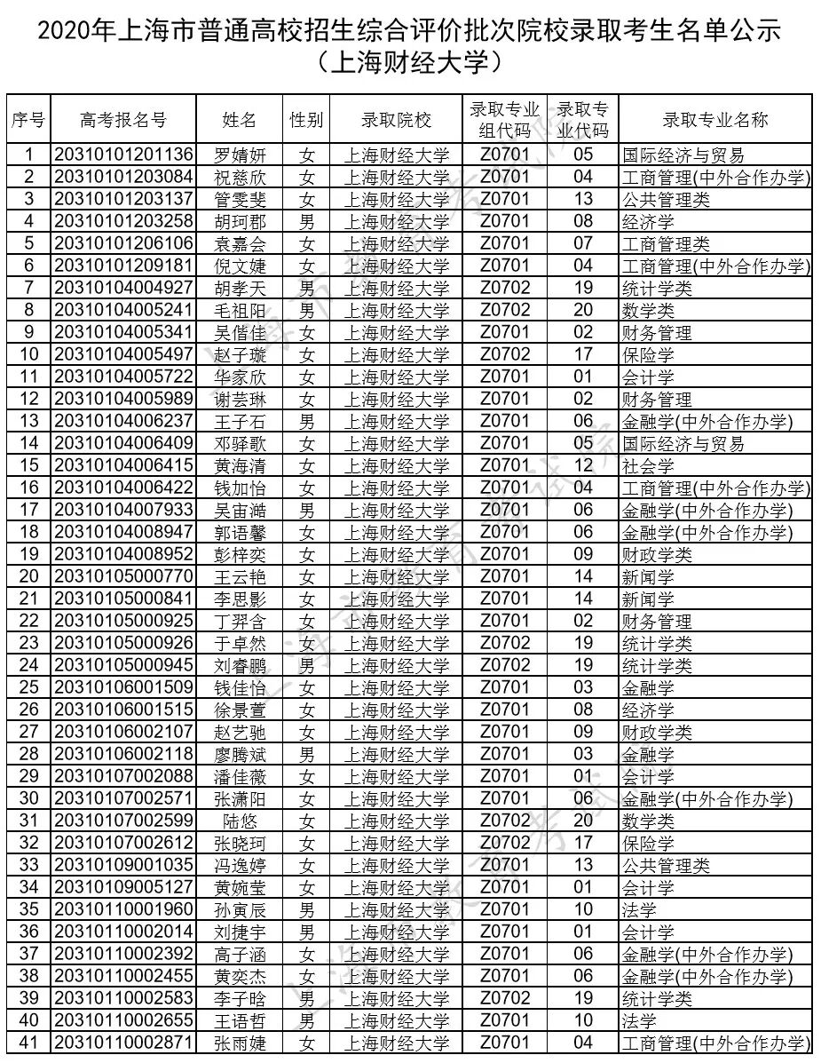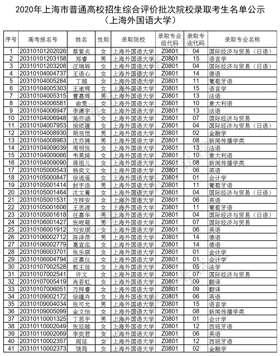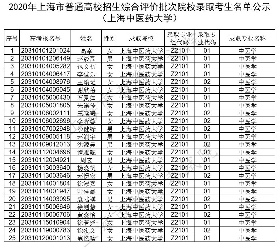 注:部分院校顺延公示综合评价批次录取考生名单