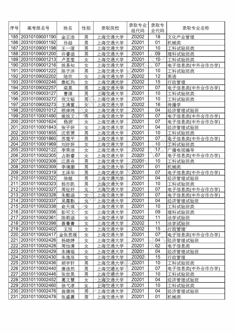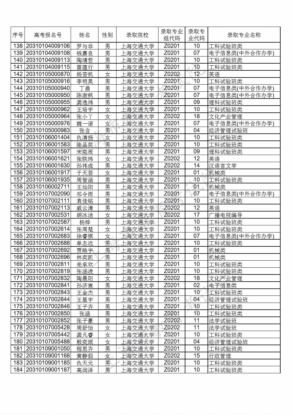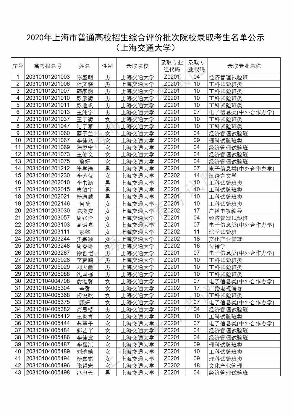注:部分院校顺延公示综合评价批次录取考生名单