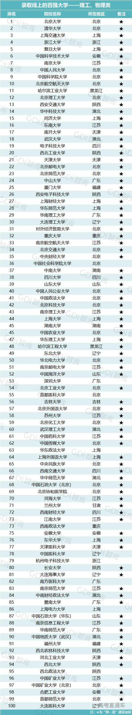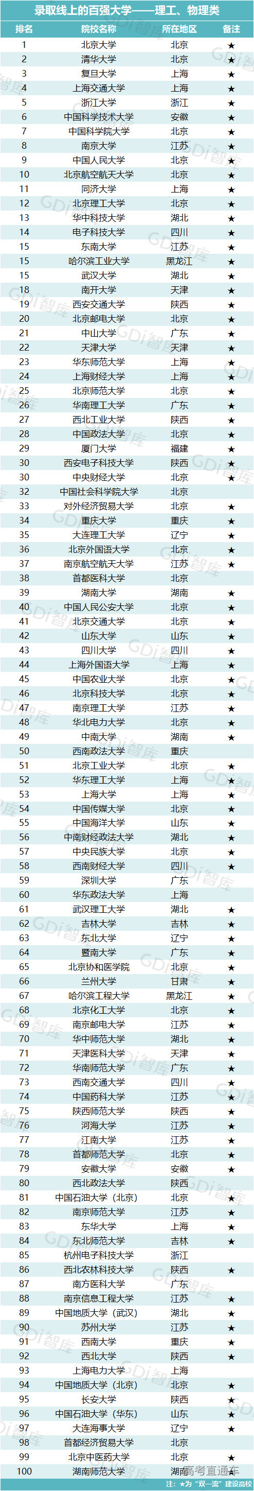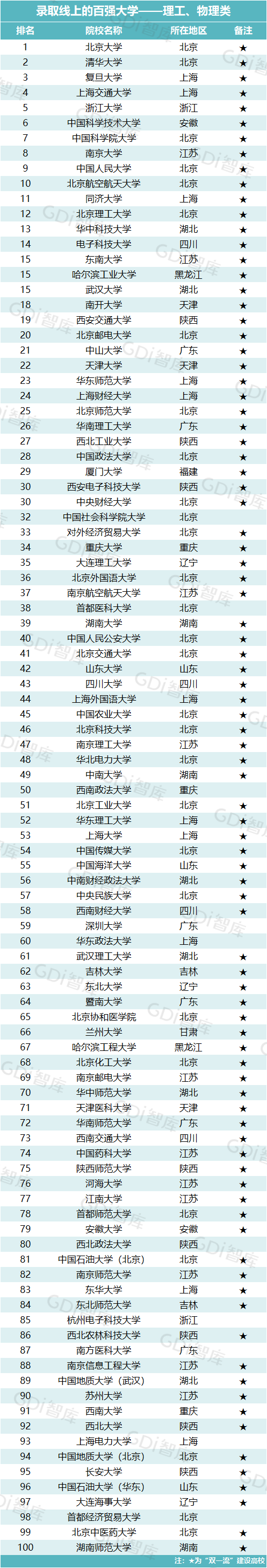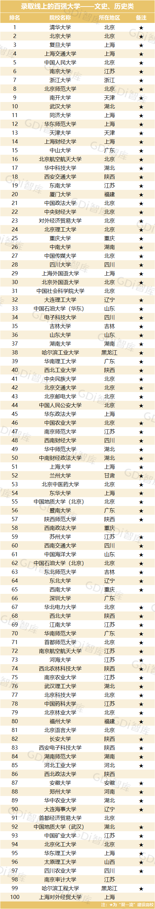 近日,广州日报数据和数字化研究院(GDI智库)发布“录取线上的百强大学榜”(以下简称“百强榜”),推出两大榜单:“录取线上的百强大学—文史、历史类”和“录取线上的百强大学—理工、物理类”。