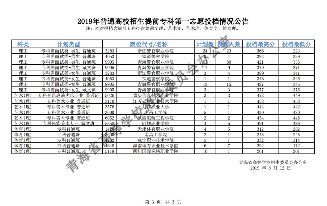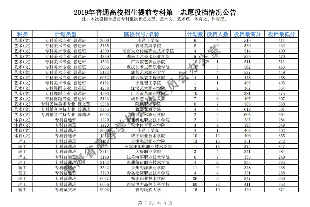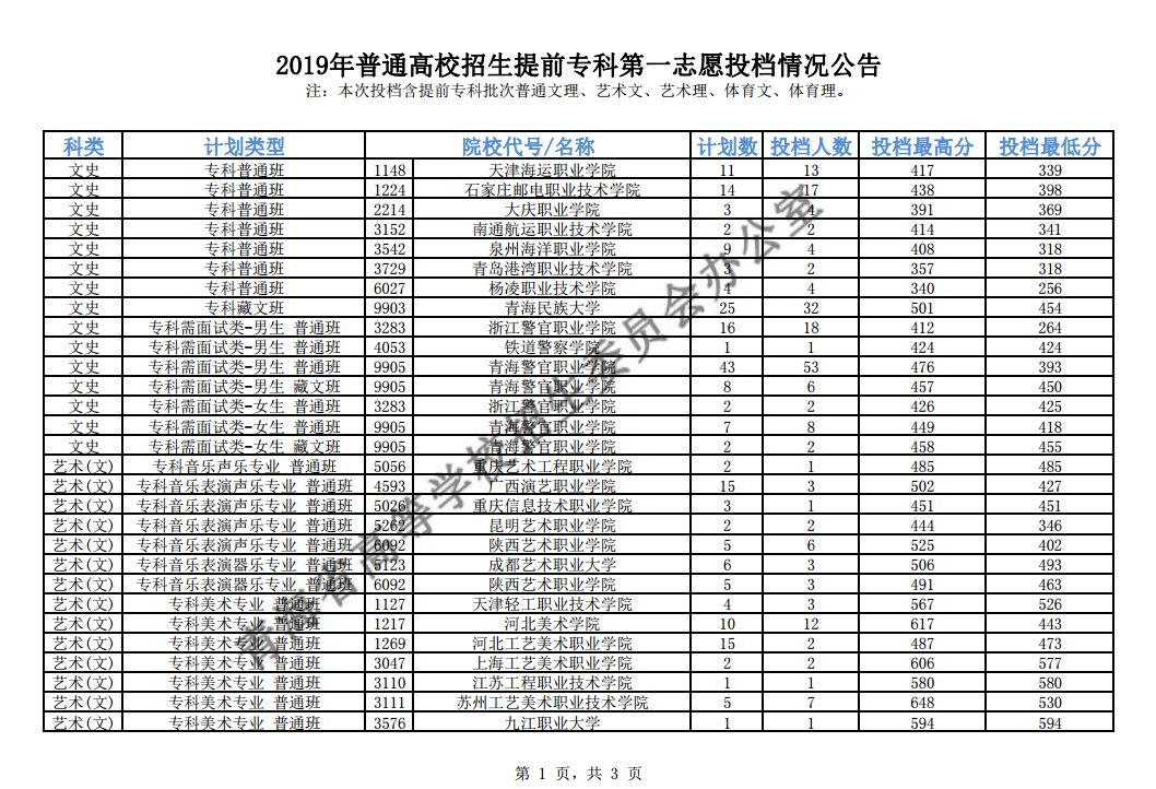 注:本次投档含提前专科批次普通文理、艺术文、艺术理、体育文、体育理。