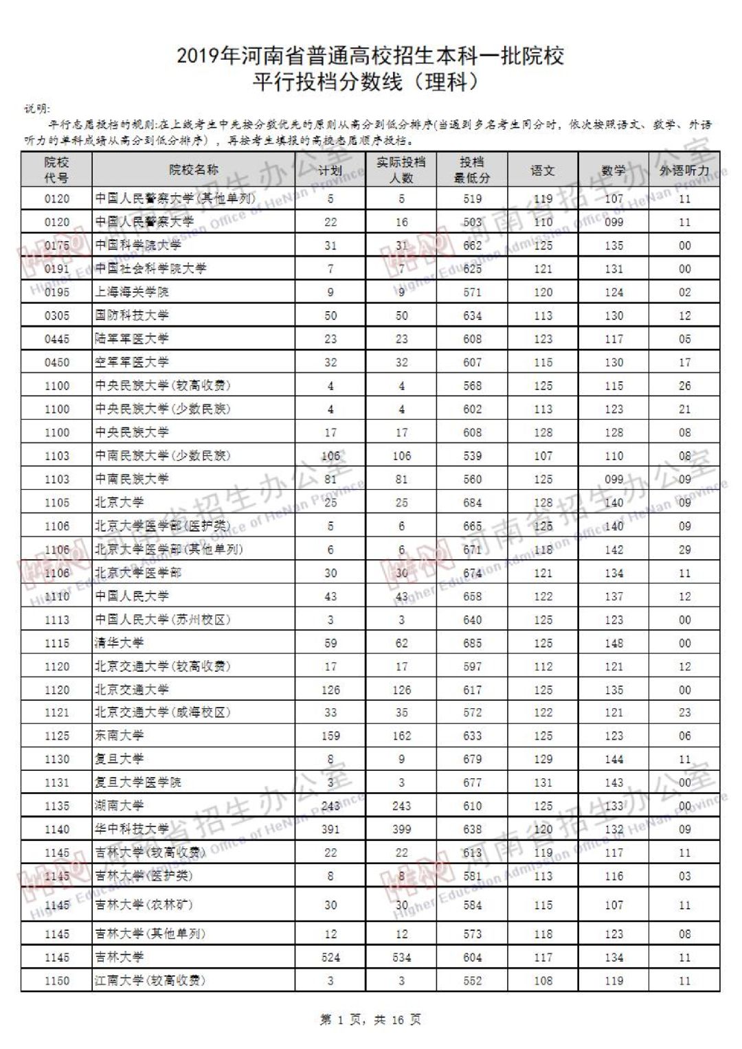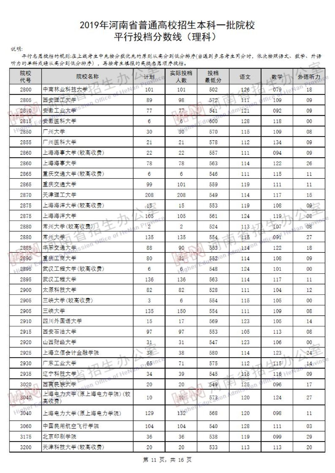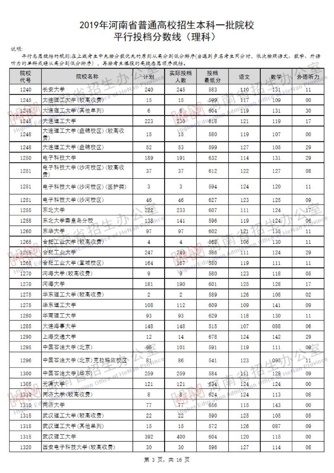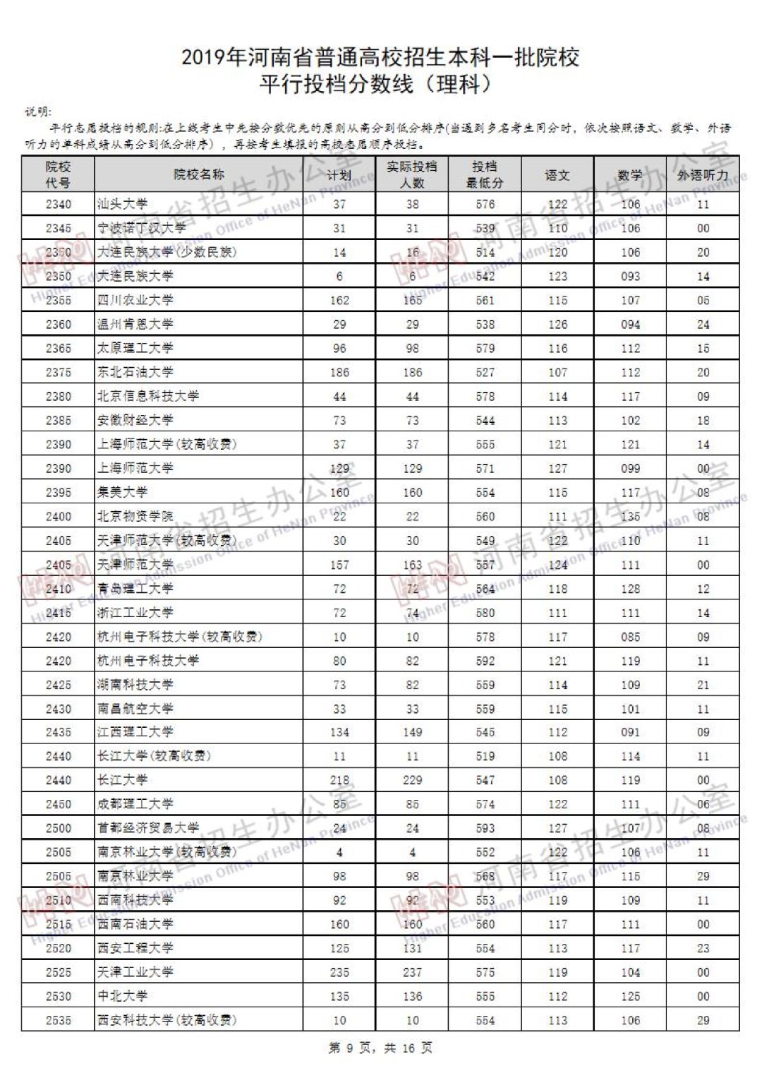2019年河南省普通高招本科一批院校平行投档分数线已出炉,快看看在豫参加录取的各大高校的投档线是多少!