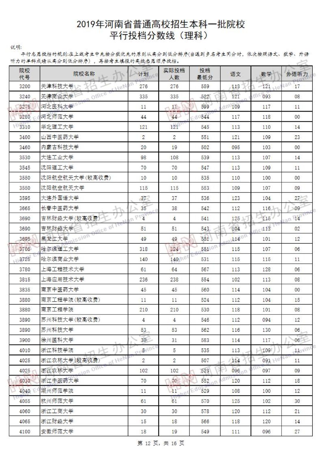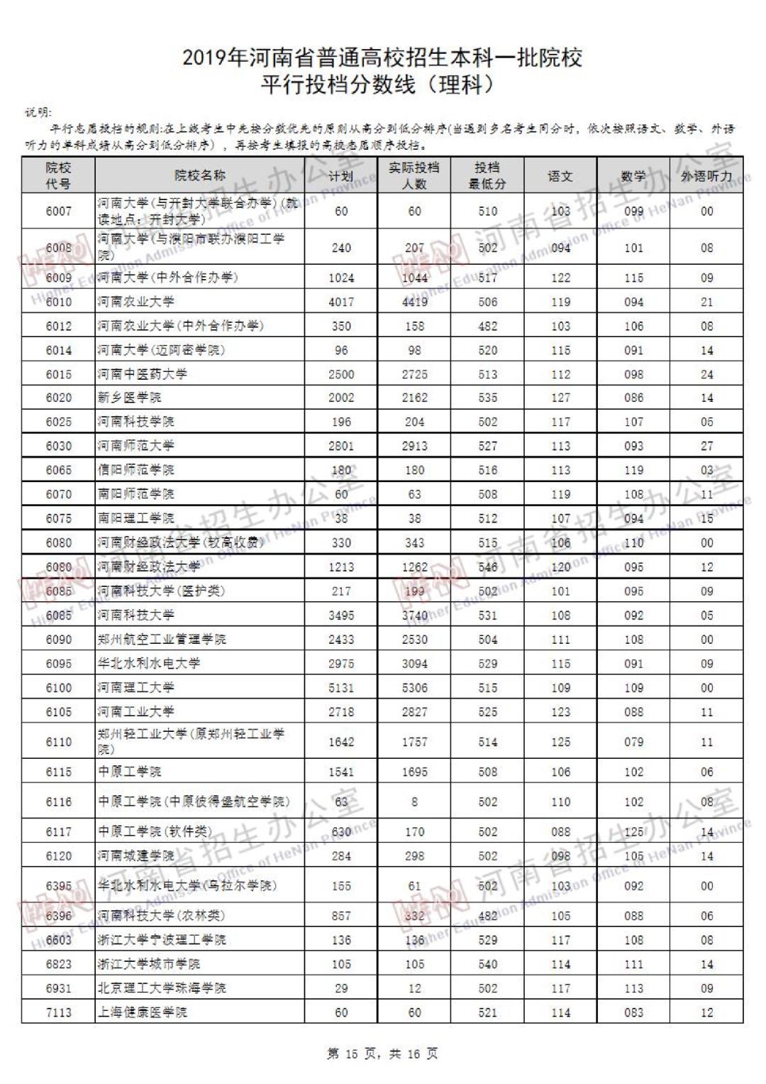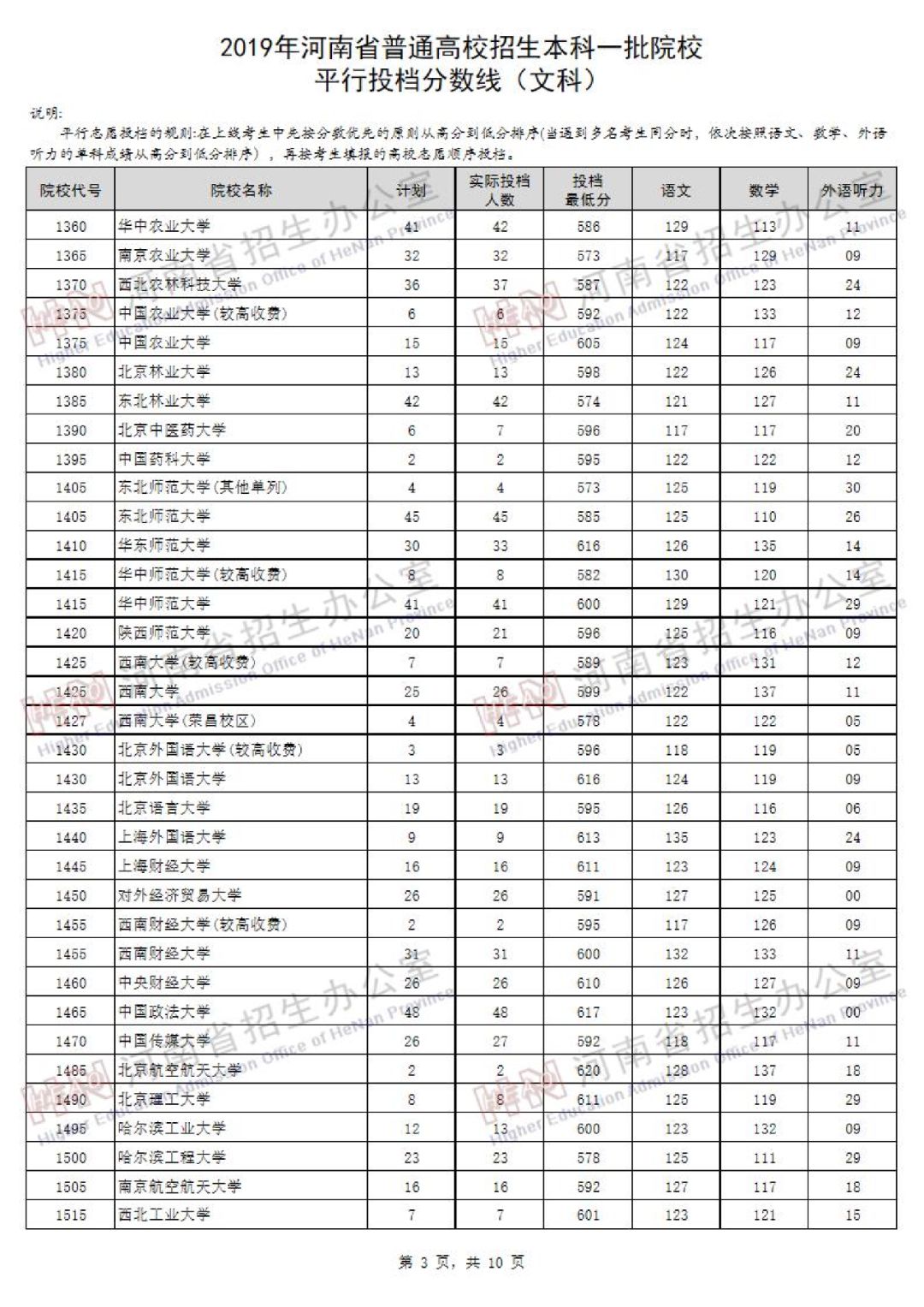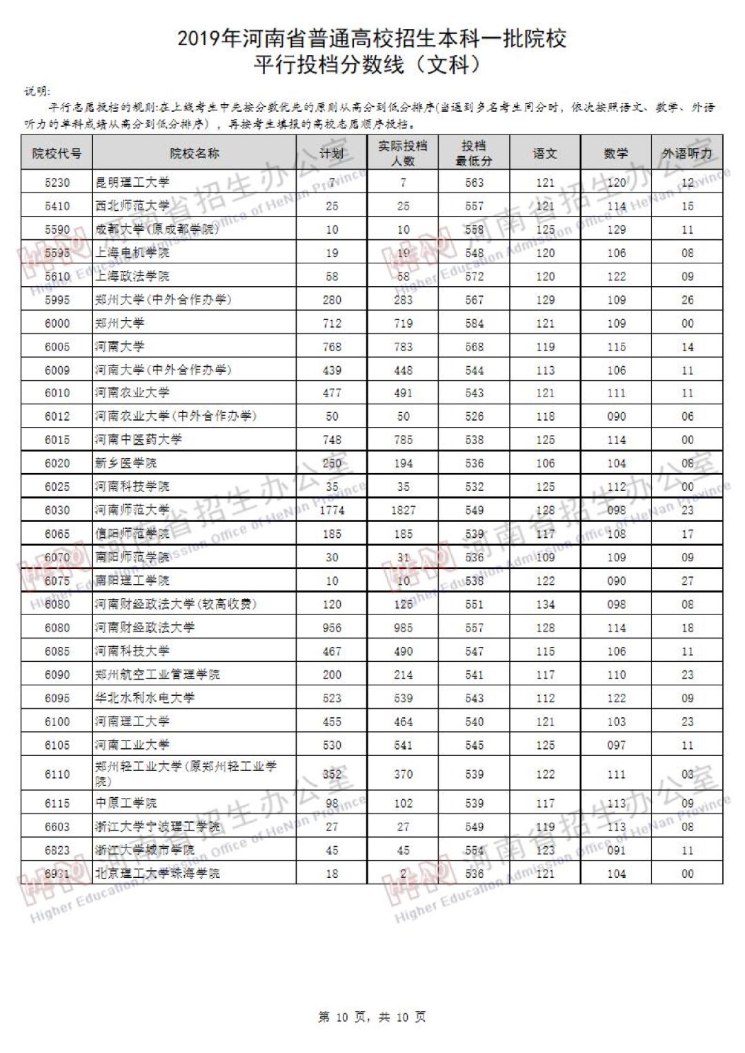 2019年河南省普通高招本科一批院校平行投档分数线已出炉,快看看在豫参加录取的各大高校的投档线是多少!