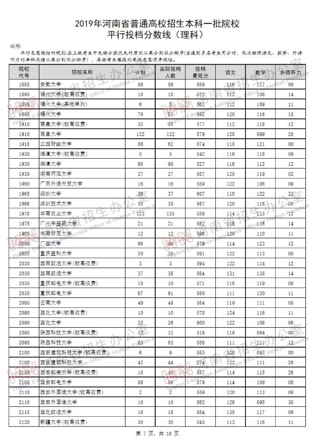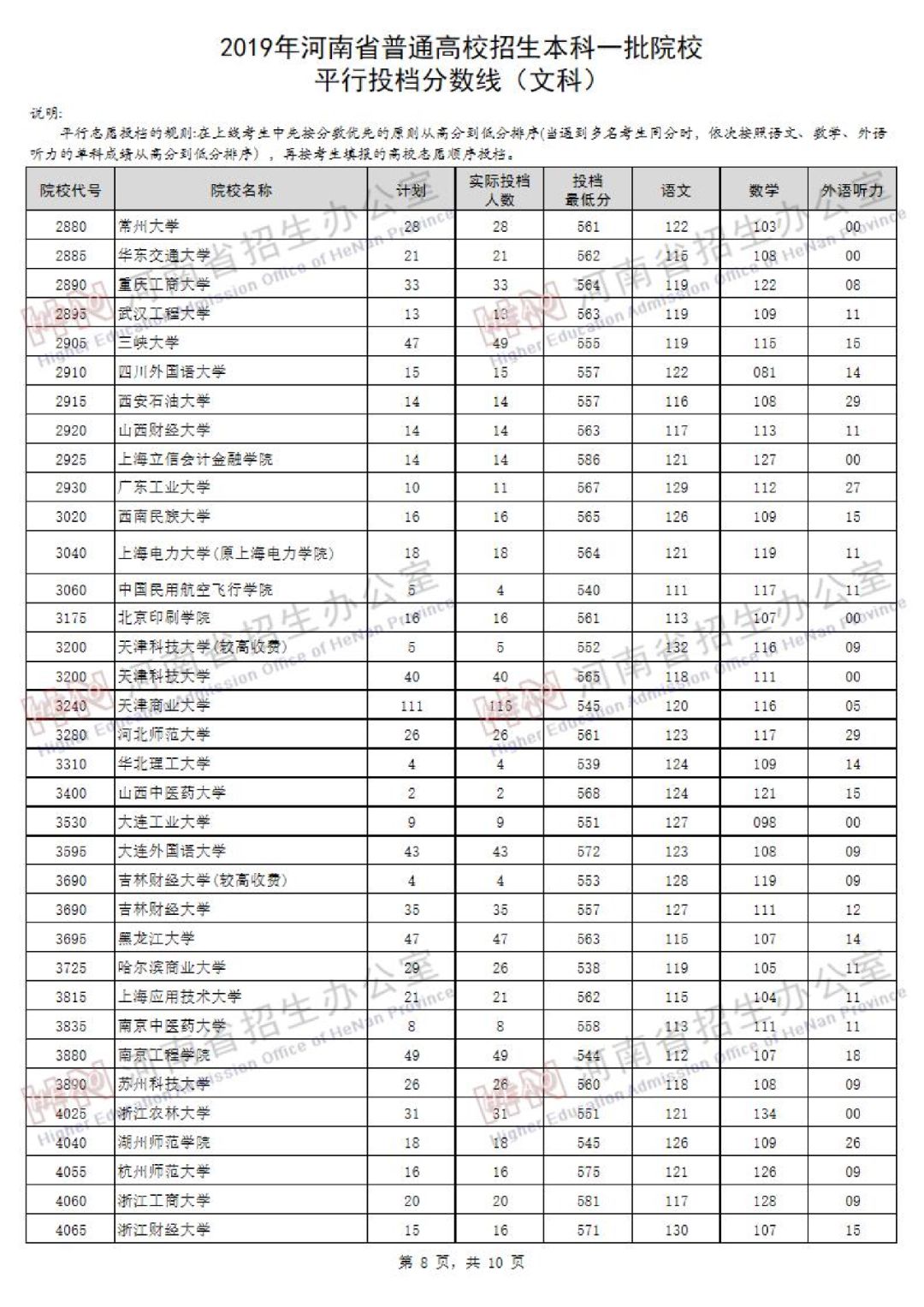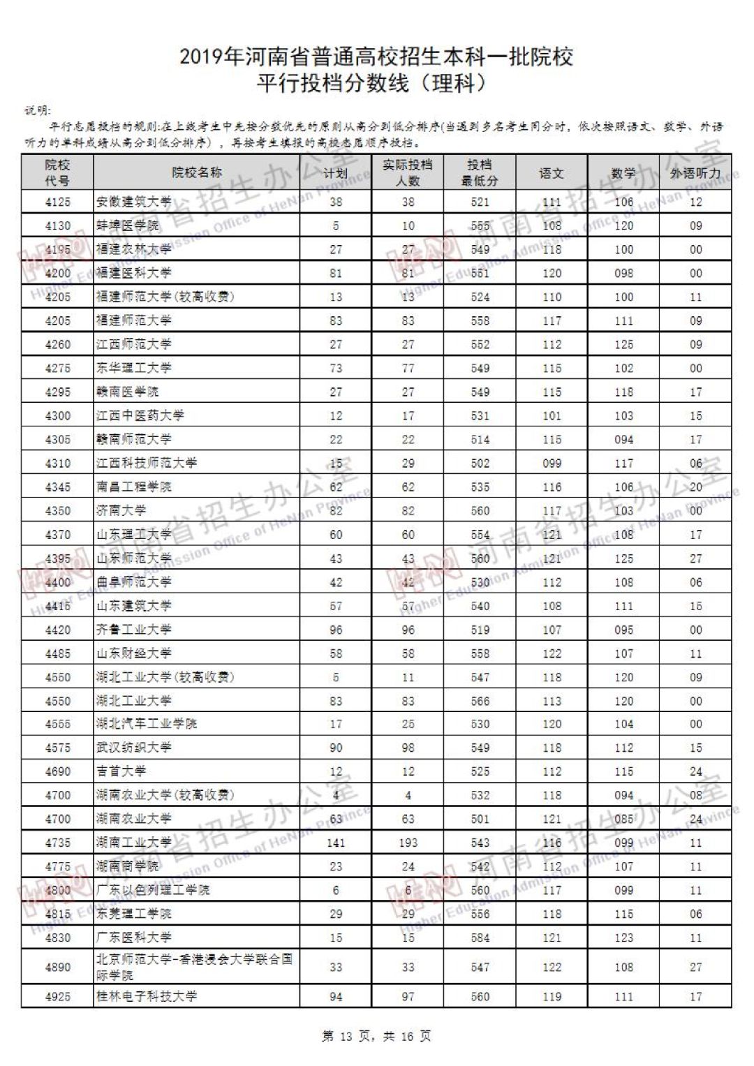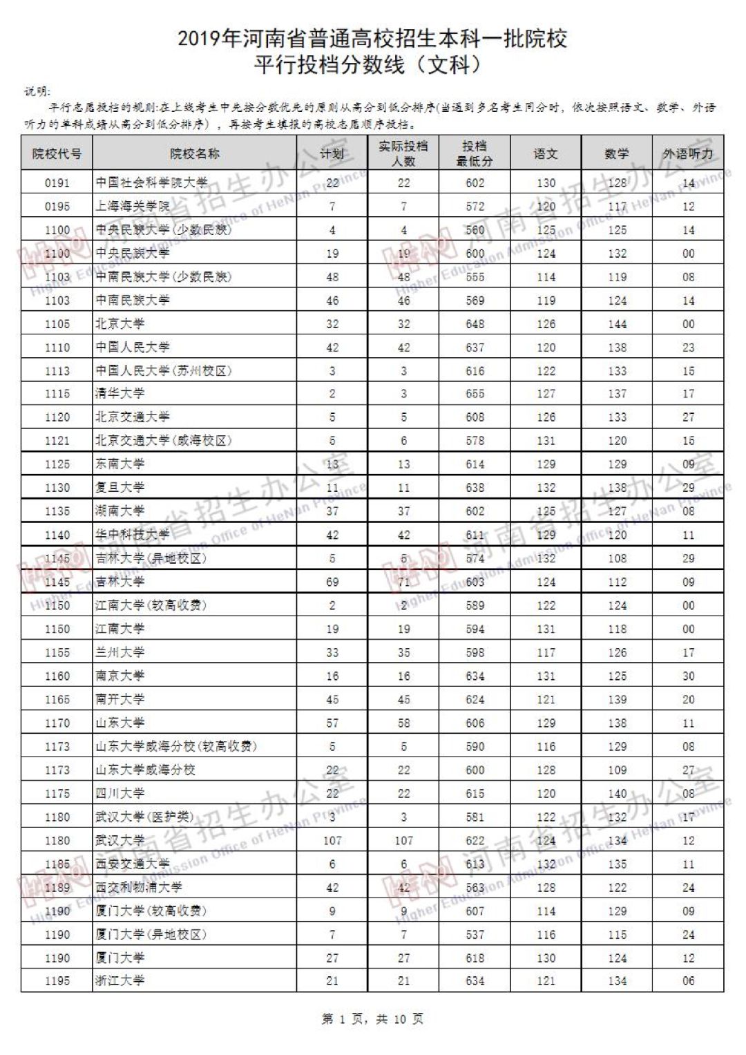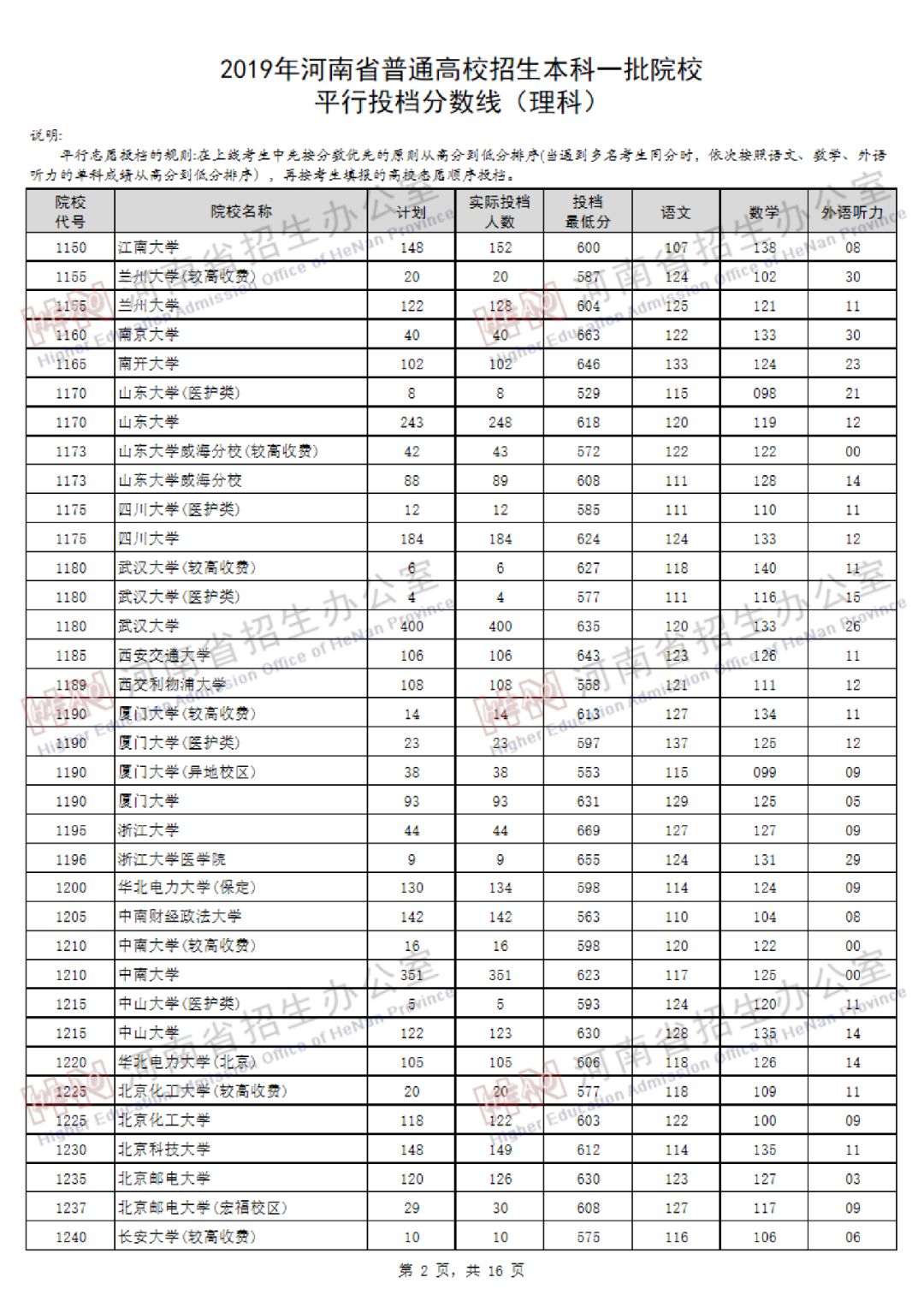 2019年河南省普通高招本科一批院校平行投档分数线已出炉,快看看在豫参加录取的各大高校的投档线是多少!
