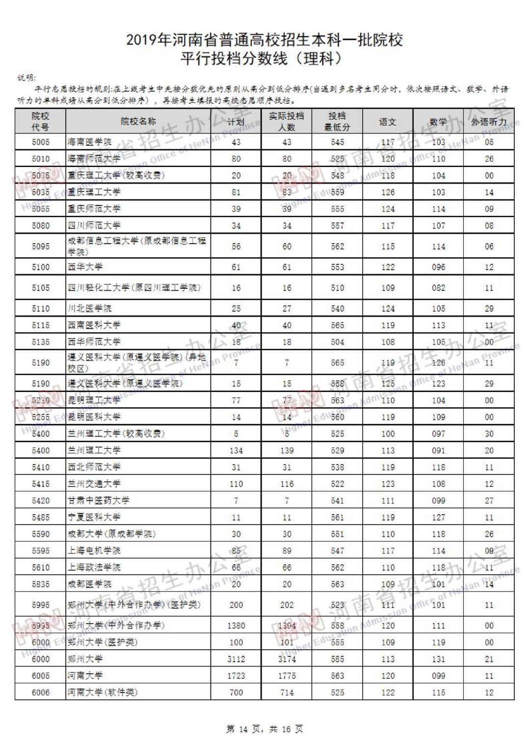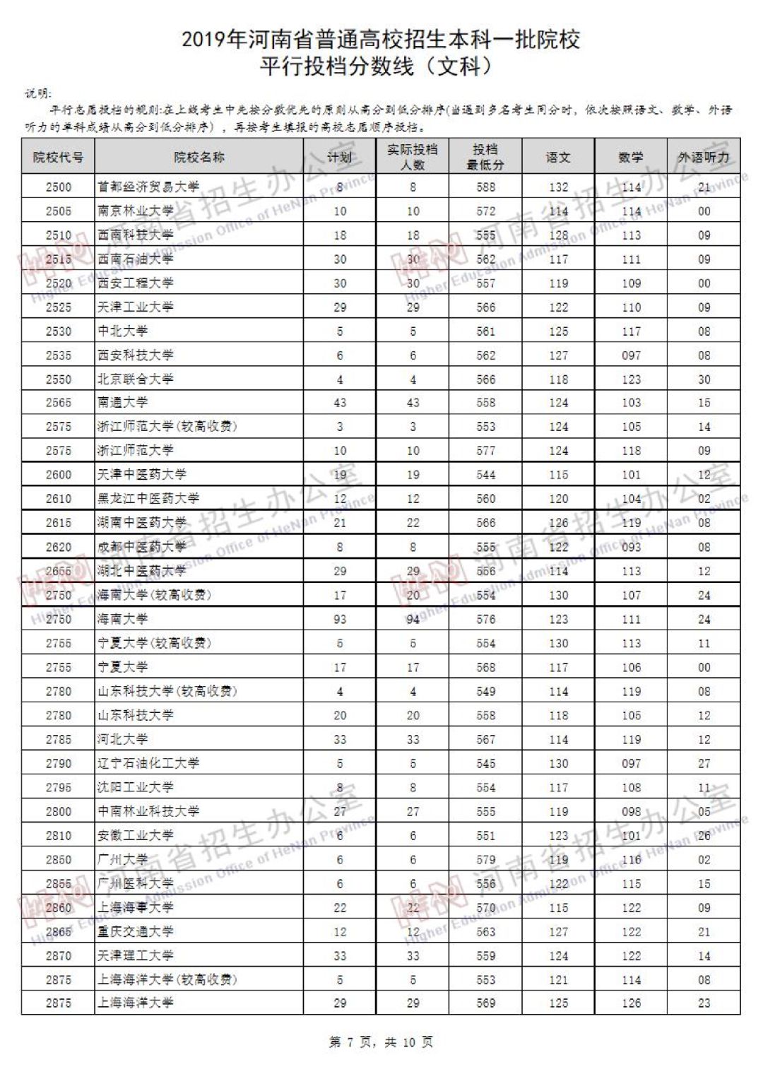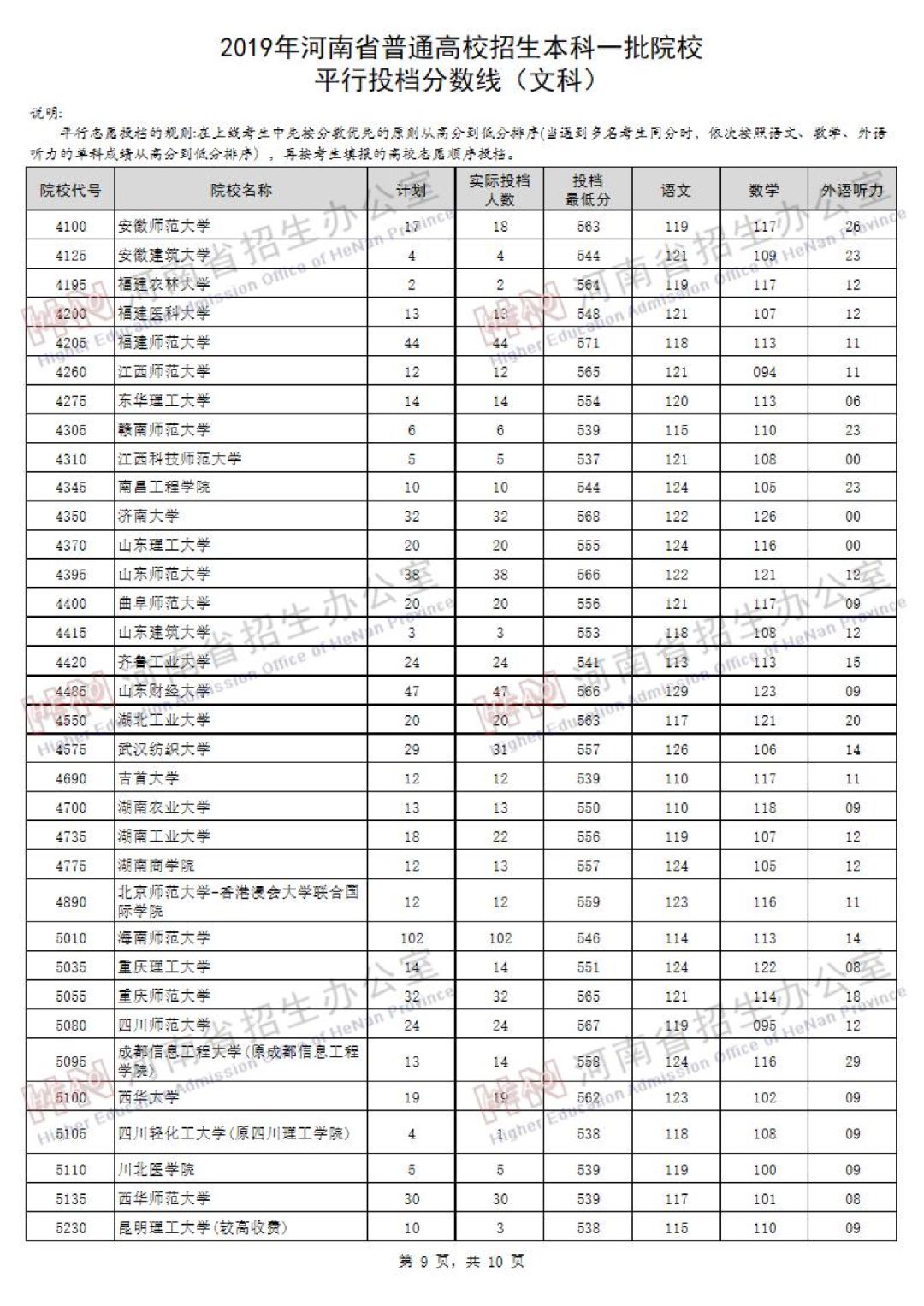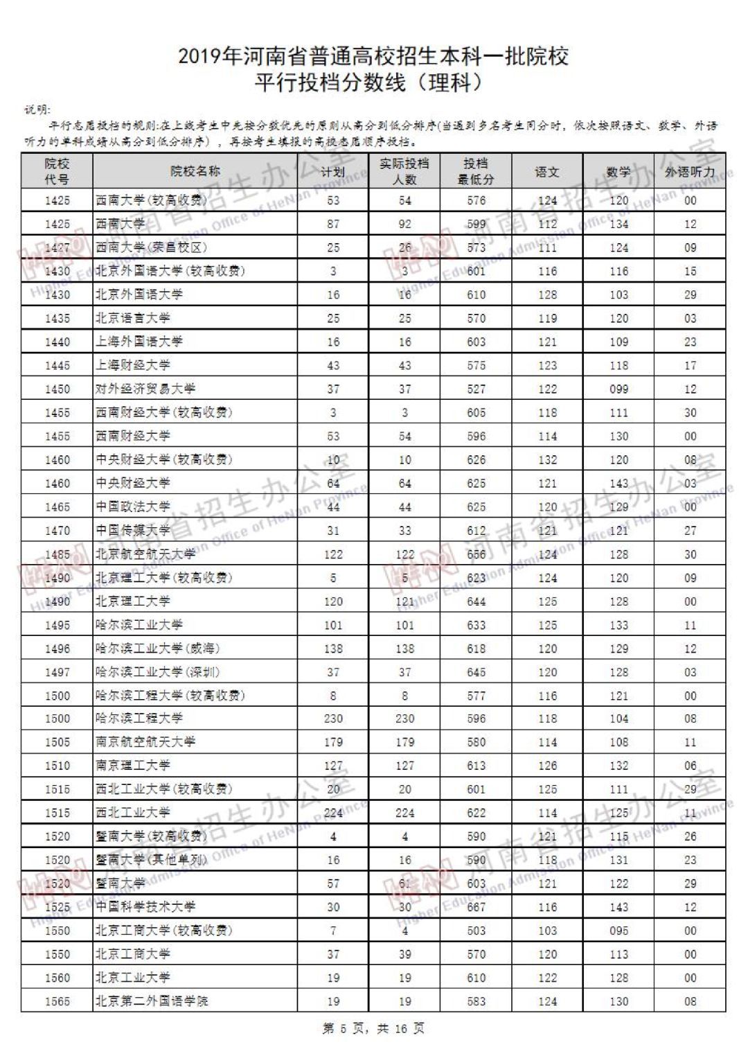 2019年河南省普通高招本科一批院校平行投档分数线已出炉,快看看在豫参加录取的各大高校的投档线是多少!
