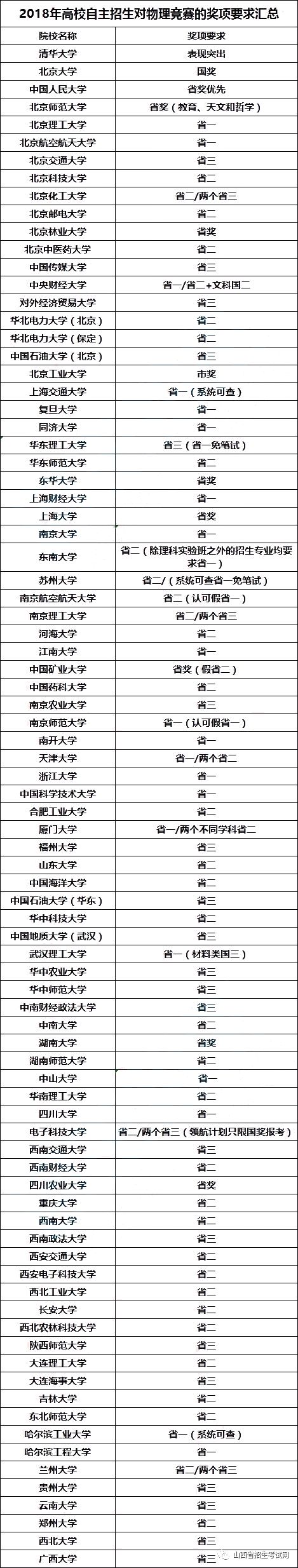 附:2018年高校自主招生对物理竞赛的奖项要求