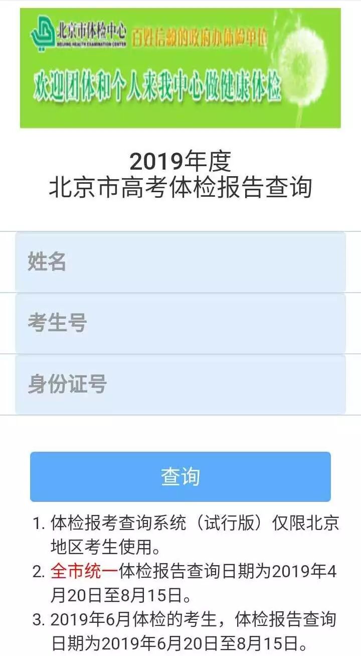 1 7日、8日 参加高考 6月7日、8日,高三考生将走向高考考场,检验十多年的学习成果。按规定,准考证将于3日前下发到考生手中。考生考前要查看准考证,明确考试地点,确定考试两天的出行方式、路线,还要适当进行身体放松训练,保持良好睡眠,力争以最佳状态迎接高考。 全国统考于6月7日至8日进行,各科目的具体考试时间见下表: 注:具体考试时长以实际听力播放时间为准。 2 《专业目录》发放 注:图为去年《专业目录》封面,仅供参考。 普通高等学校招生专业目录(简称《专业目录》)等材料也在6月发放。这些材料汇总了所有在京招生的学校、专业计划、学校和专业代码等众多内容,是考生填报志愿的重要参考资料。考生在阅读《专业目录》时要看清科类、批次、院校、专业、特殊符号等内容。 3 高考体检补检与复检 点击图片即可跳转查询体检结果 按规定,报考高校的所有考生均要参加身体健康状况检查,如实填写本人的既往病史。 补检 今年集中的考生体检已于3月结束。未能在规定时间参加体检的考生可于6月9日12时30分至15时30分到北京市体检中心补检。 复检 如果考生对本人体检结果有异议,要在体检结果公布之日起两周之内通过报名单位向所在体检医院提出复检申请,由体检医院根据情况安排复检。如考生对复检结果仍存异议,可通过体检医院或区高招办向市体检中心提出终检申请,由市体检中心进行终检。 4 相关高校自主招生考试 各高校自主招生考试将在高考结束后陆续进行。各校自主选拔侧重考查内容会有差异,考生要结合选报高校的要求理性备考。 中国传媒大学招生办主任闫磊凡提醒,眼下,考生要以高考复习为主,等高考结束后再根据各校发布的考试内容进行相应的准备。以中传为例,该校今年自主招生各专业测试都以考查考生的平时积累和发展潜质为主。另外,今年该校自主招生校考环节增加了体质测试的内容,涉及50米和立定跳远两个项目。未参加体质测试的考生将被视为放弃学校自主招生资格。因此考生在考前要注意身体,不要因为发生意外而不能参加测试。 5 本专科招生网上咨询 本专科招生网上咨询在6月进行。届时,北京教育考试院高招办、区高招办以及高校招办有关负责人会在网上集中回答考生的问题。 6 高校开放日活动 图为本报资料图 不少高校开放日活动在高考后进行。相关高校招办主任建议,考生和家长参加校园开放日活动,要重点关注学校的录取政策,如提档比例、专业级差、政策加分、单科成绩和身体素质特殊要求等。 7 部分香港高校申请日期 截至6月中旬 一些在内地自主招生的香港高校申请日期截至6月中旬。想报考香港高校且还没有申请的考生可在规定时间内登录招生院校网站申请。 8 高考成绩 各批次录取最低控制分数线 23日同期公布 高考成绩、各批次录取最低控制分数线也在6月23日公布。 9 高考本科志愿填报 6月25日8时至29日20时,高考本科志愿填报。东城区教育招生考试中心高招办主任刘景艳提醒,考生除要依据《专业目录》填报志愿外,还要用好分数分布统计、高校招生章程等材料,认真研读相关政策和信息,统筹分析,拉开志愿梯度,合理填报。 10 军检和公安类体检 军检、公安类院校体检等相关工作也在6月展开。报考军事类、公安院校的考生要根据通知,按时进行政审、军检(公安体检)、面试等。 (以上根据往年招生进程整理,2019年如有变动,请以最新公布政策为准。)