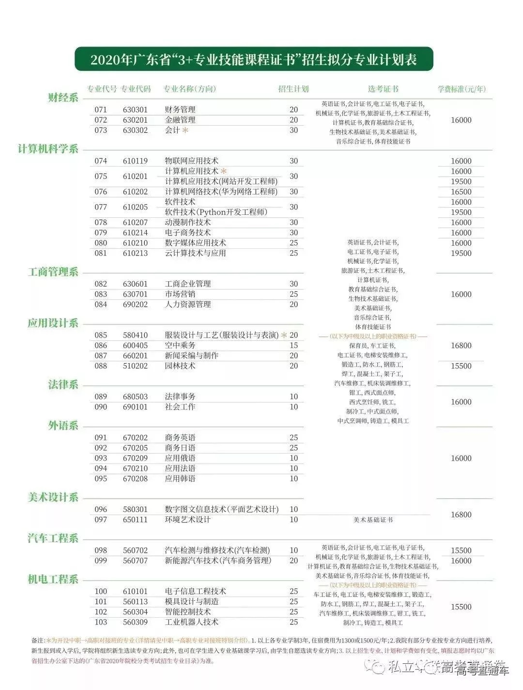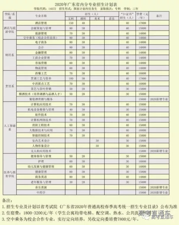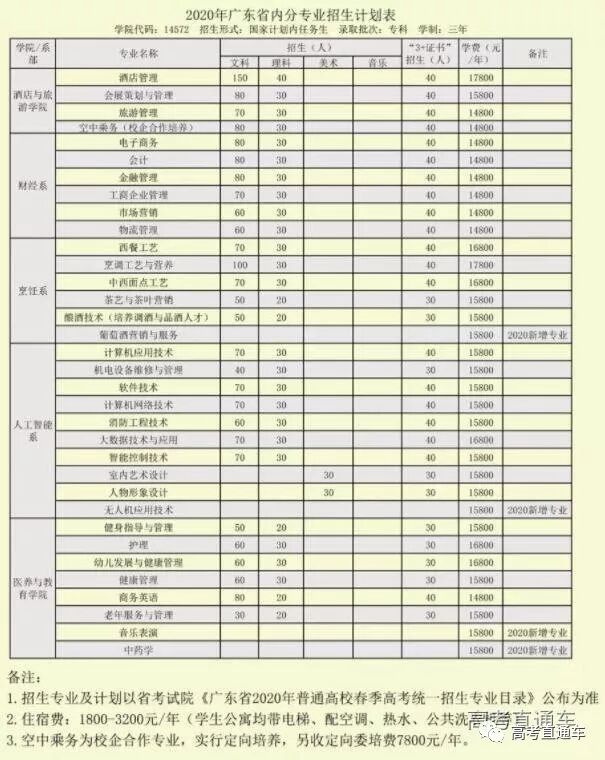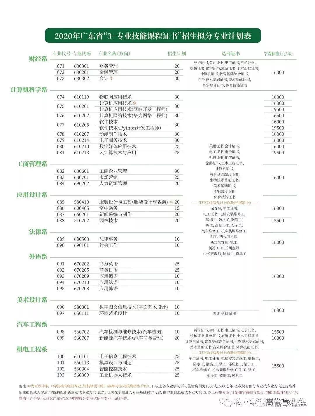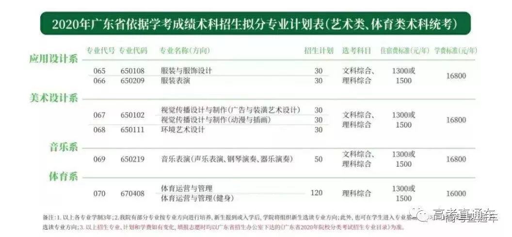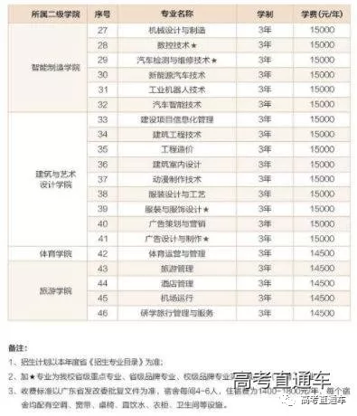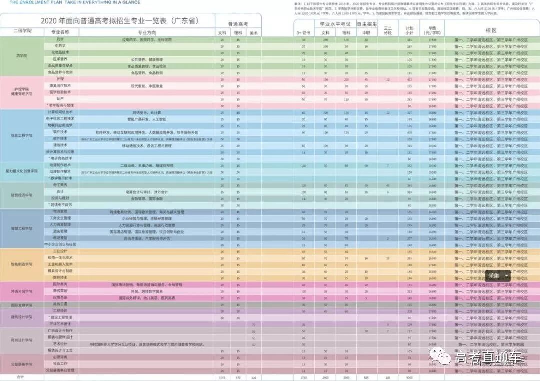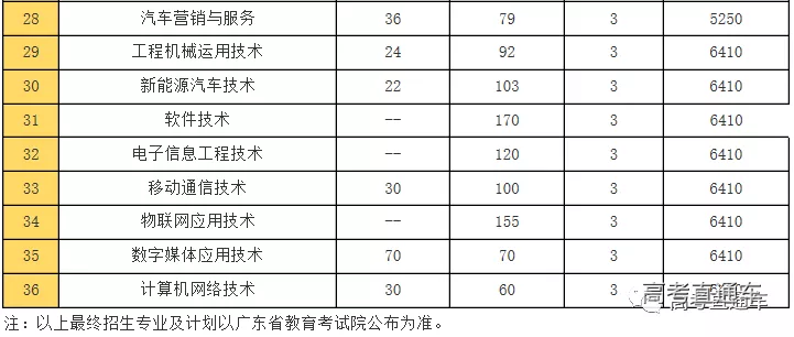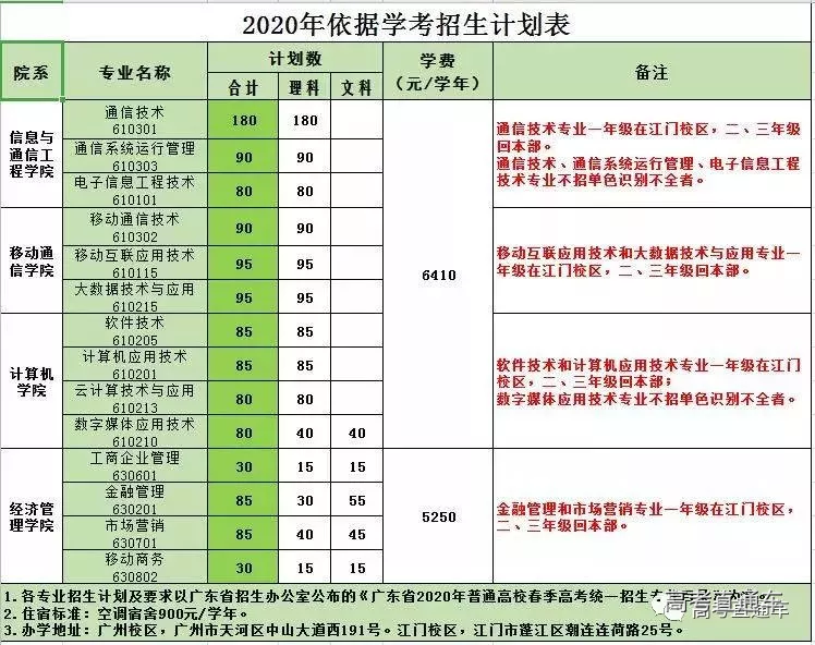 ②以下各招生专业、专业代号、计划数、专业身体限制等及其它备注以广东省招生办公布的专业目录为准;