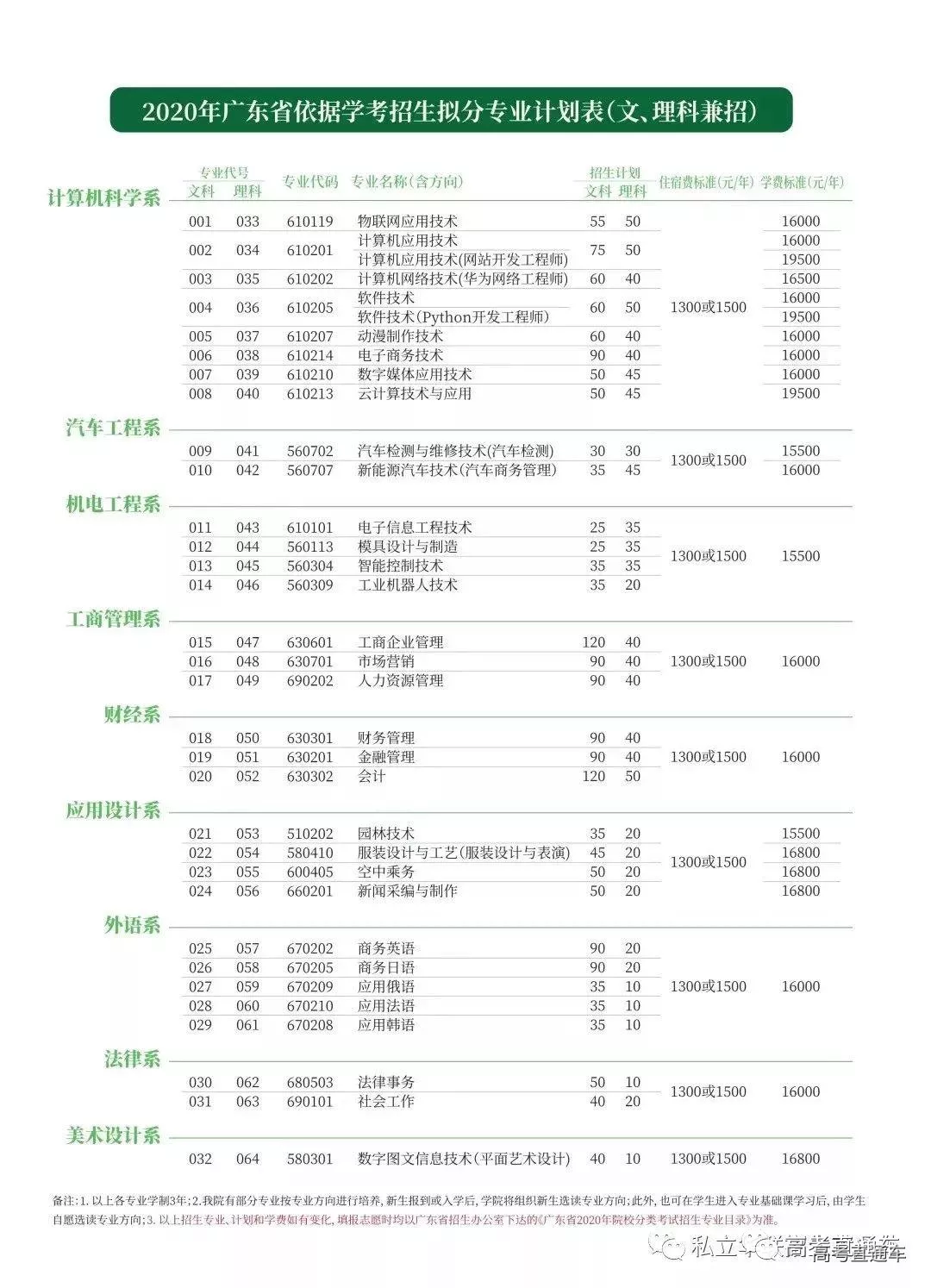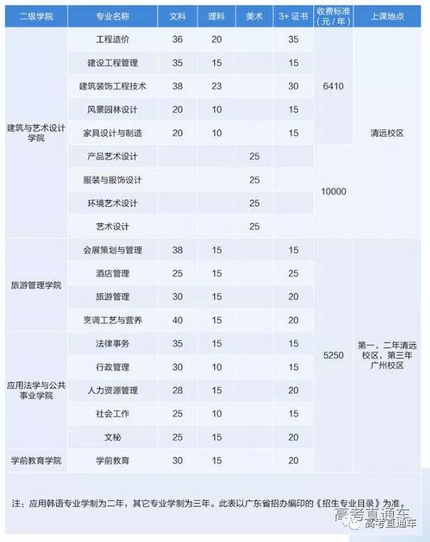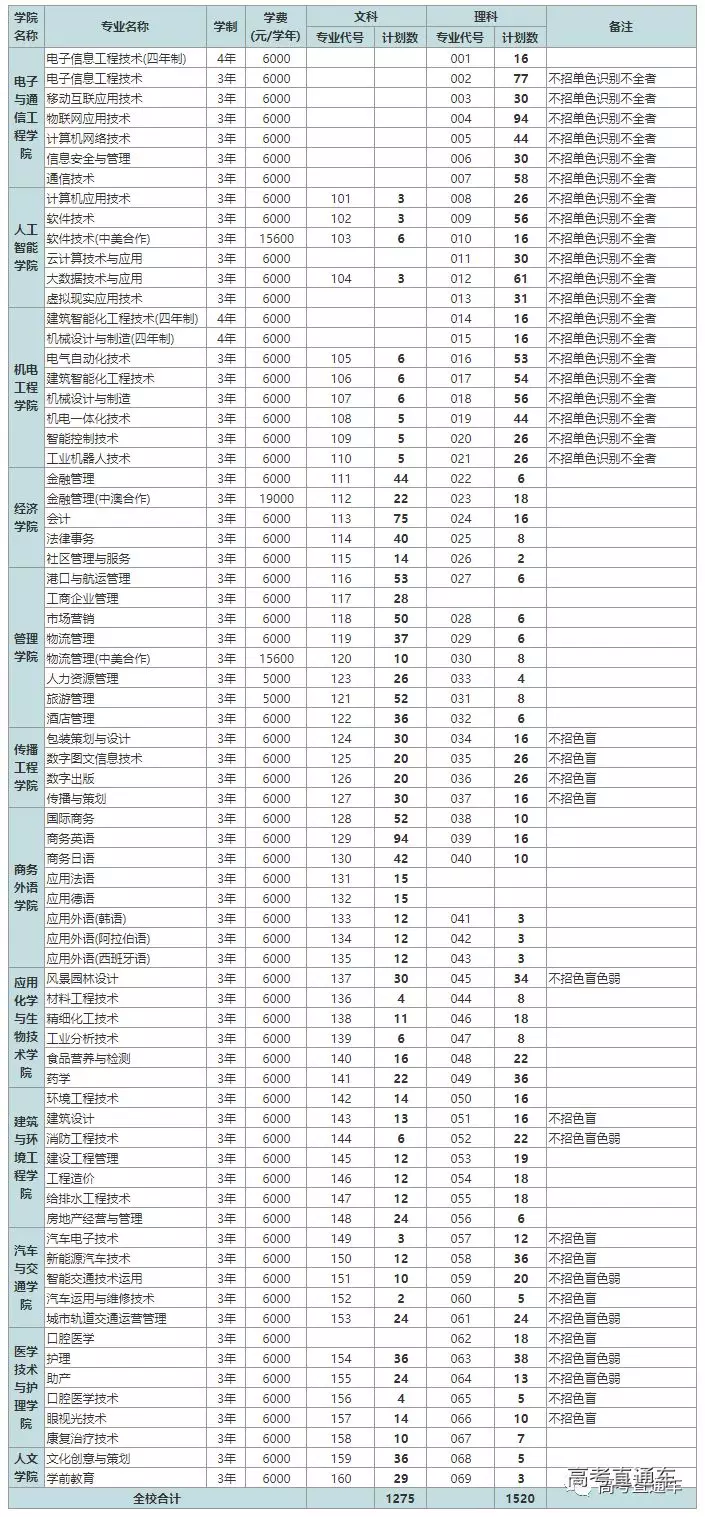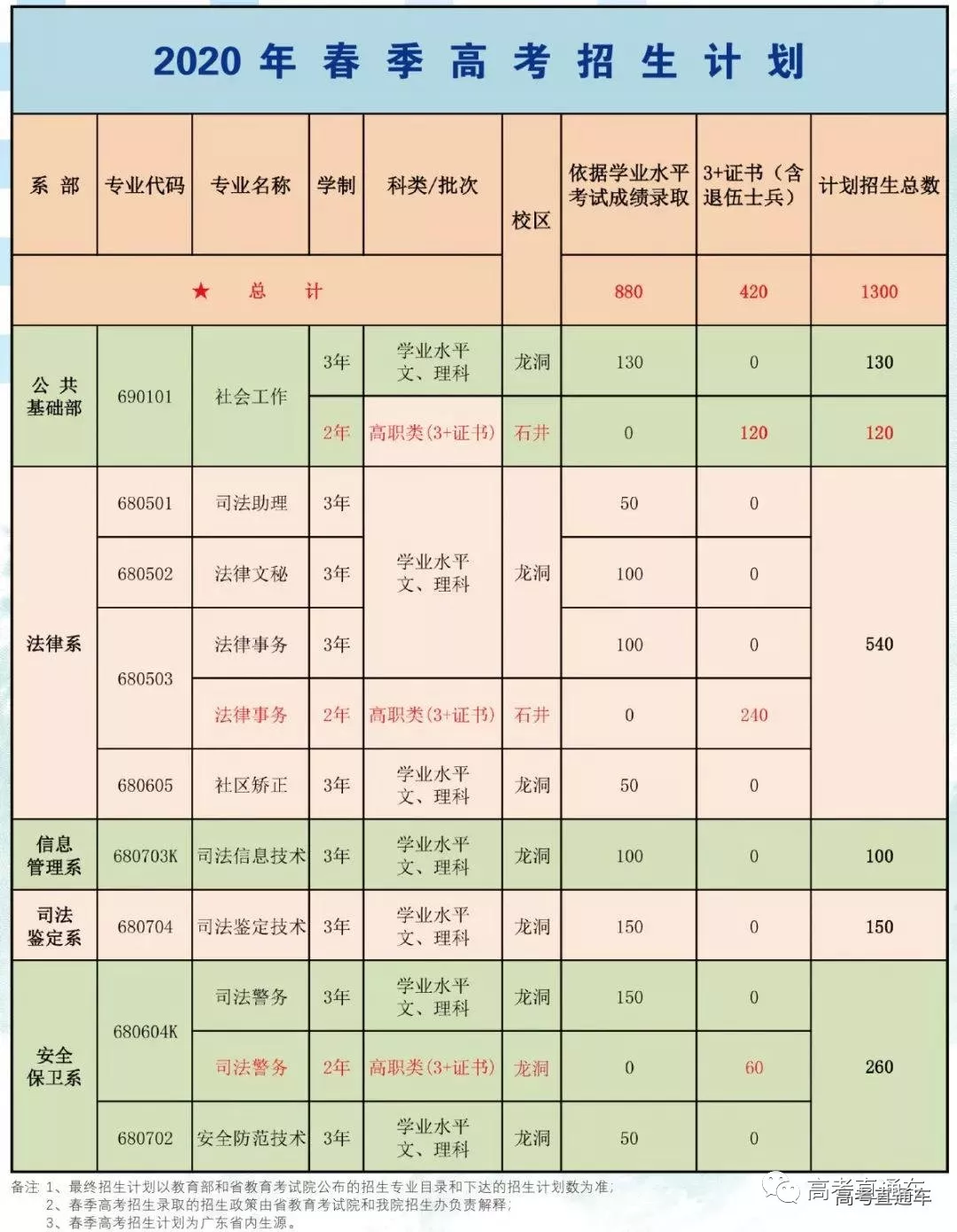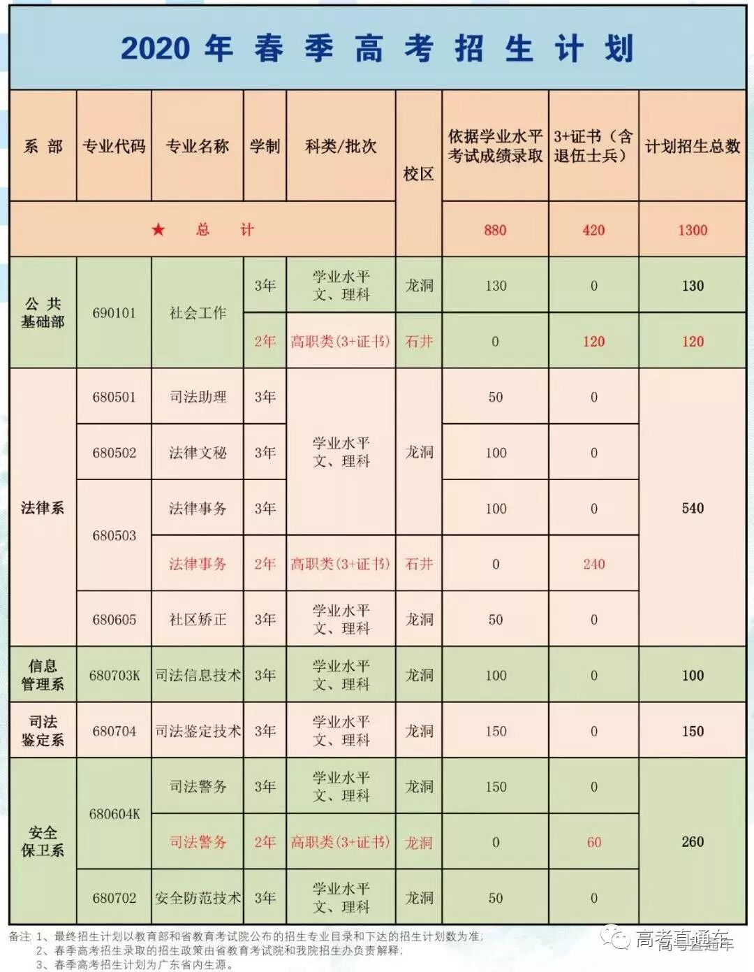 ②以下各招生专业、专业代号、计划数、专业身体限制等及其它备注以广东省招生办公布的专业目录为准;