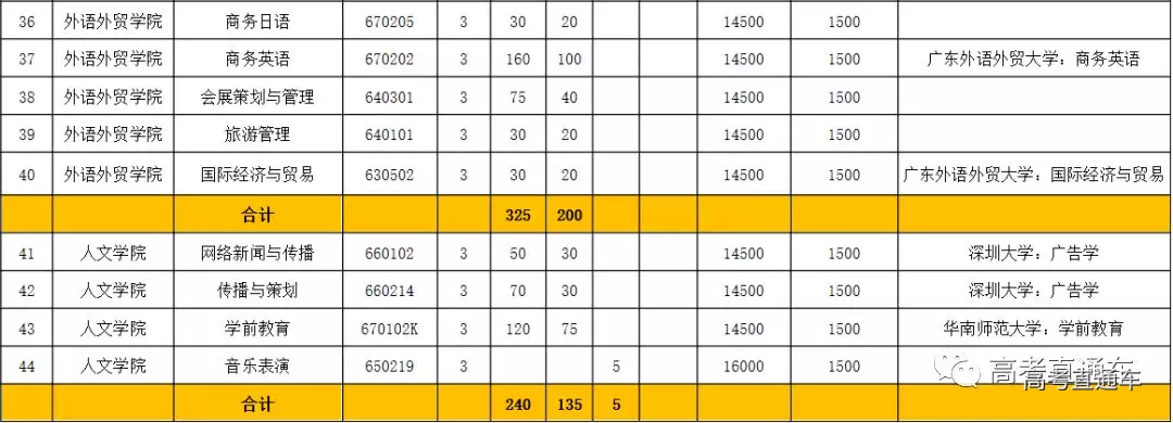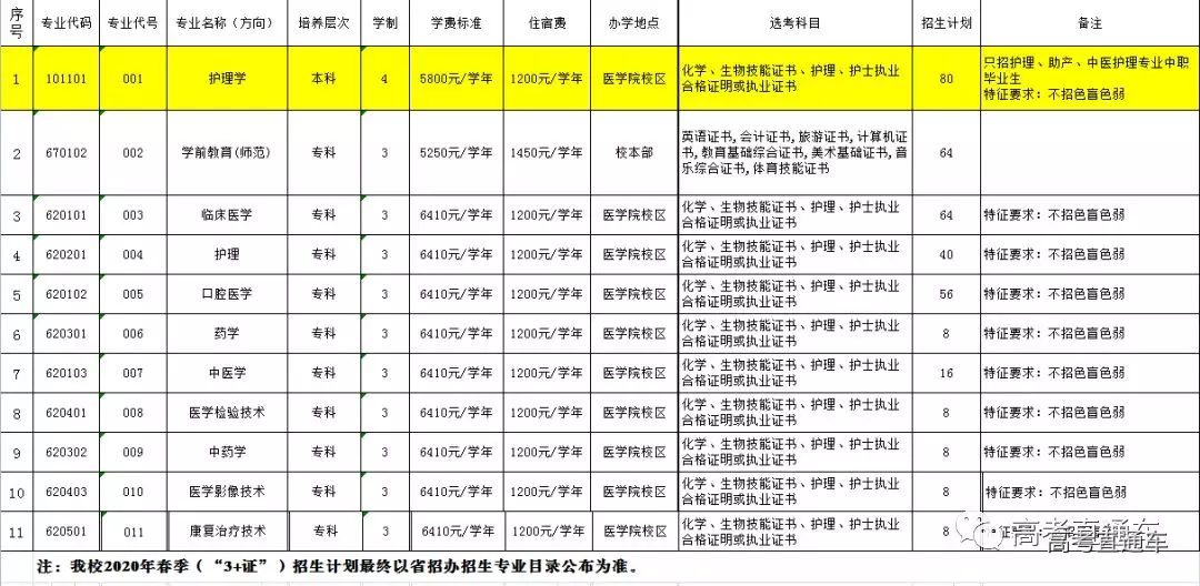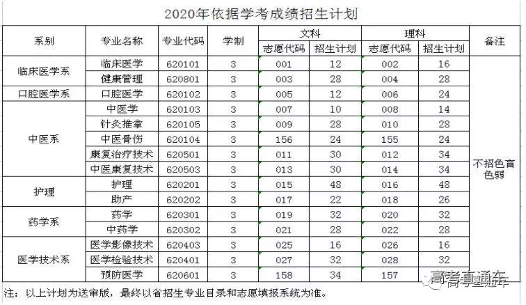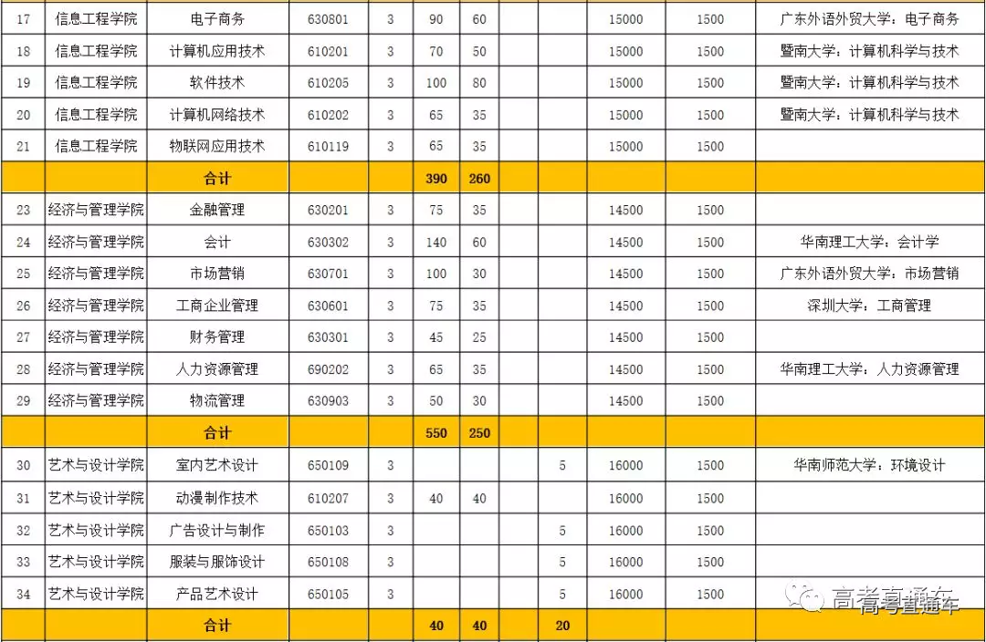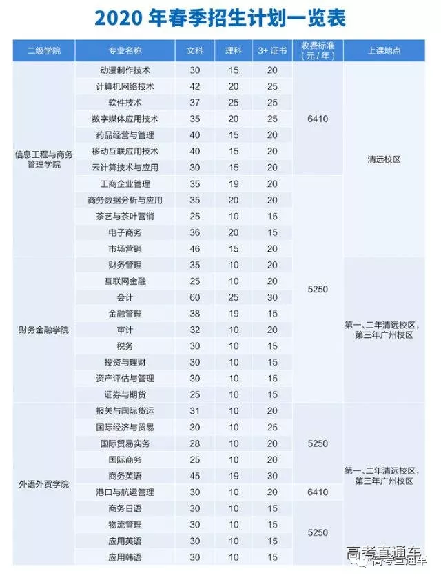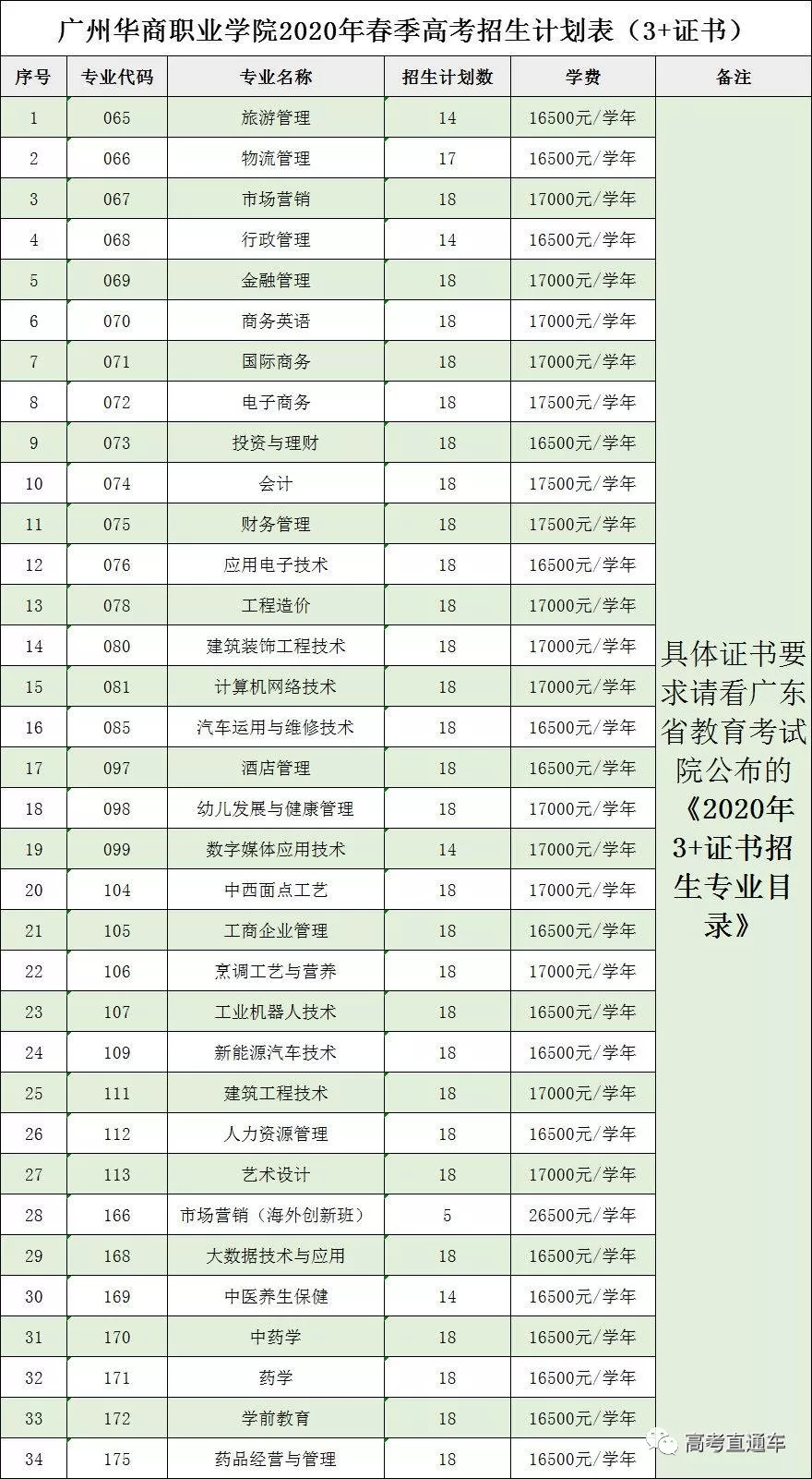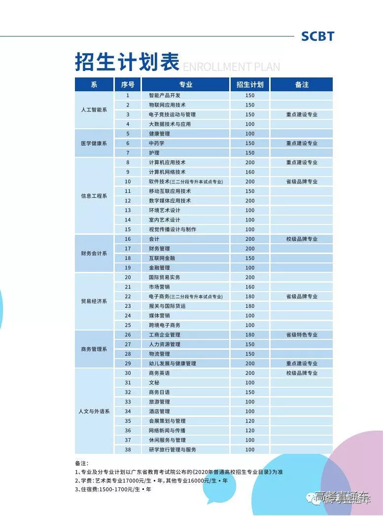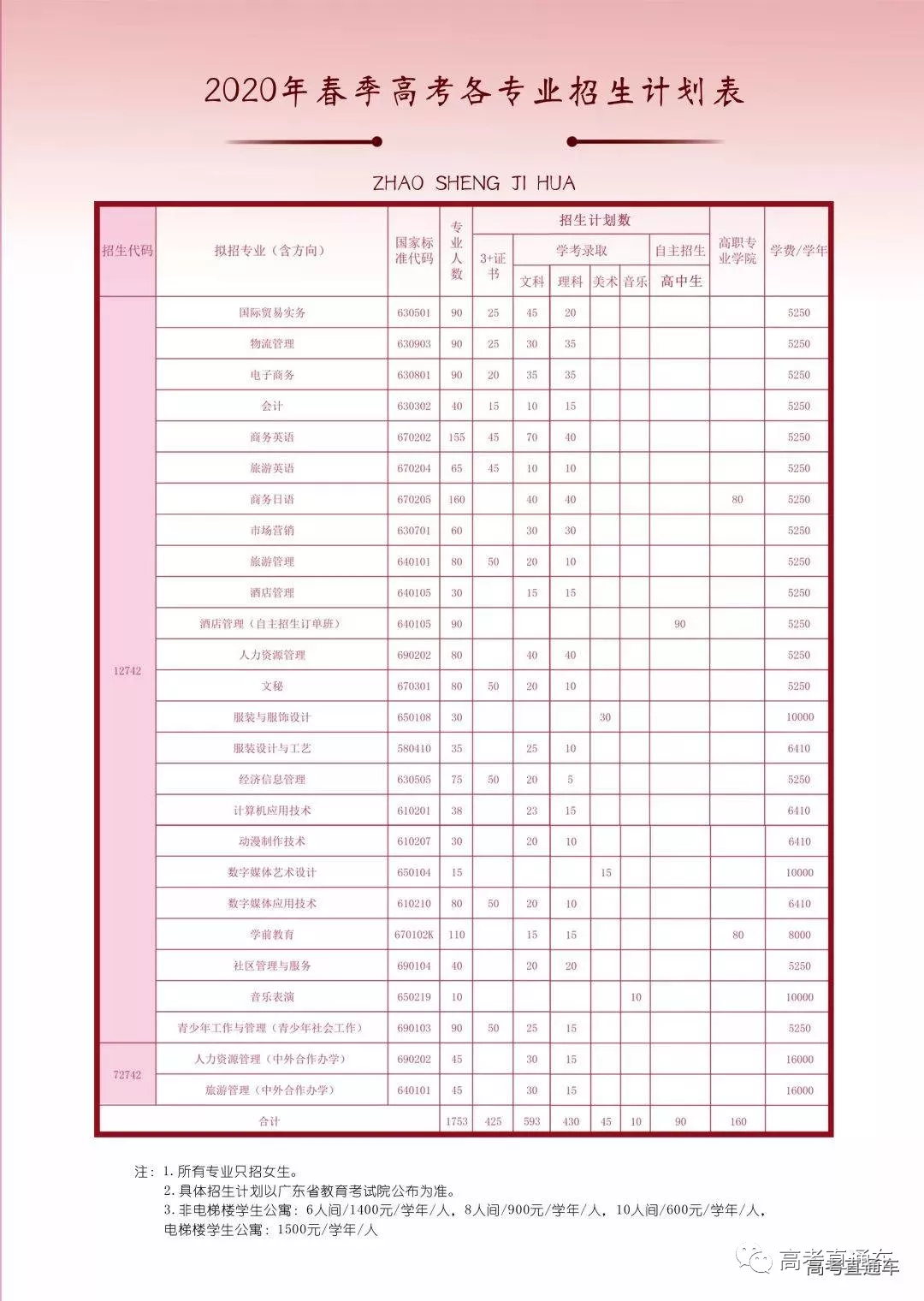 ②以下各招生专业、专业代号、计划数、专业身体限制等及其它备注以广东省招生办公布的专业目录为准;