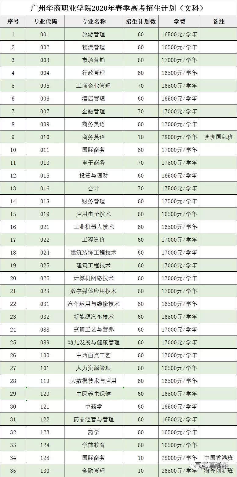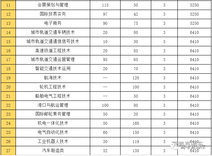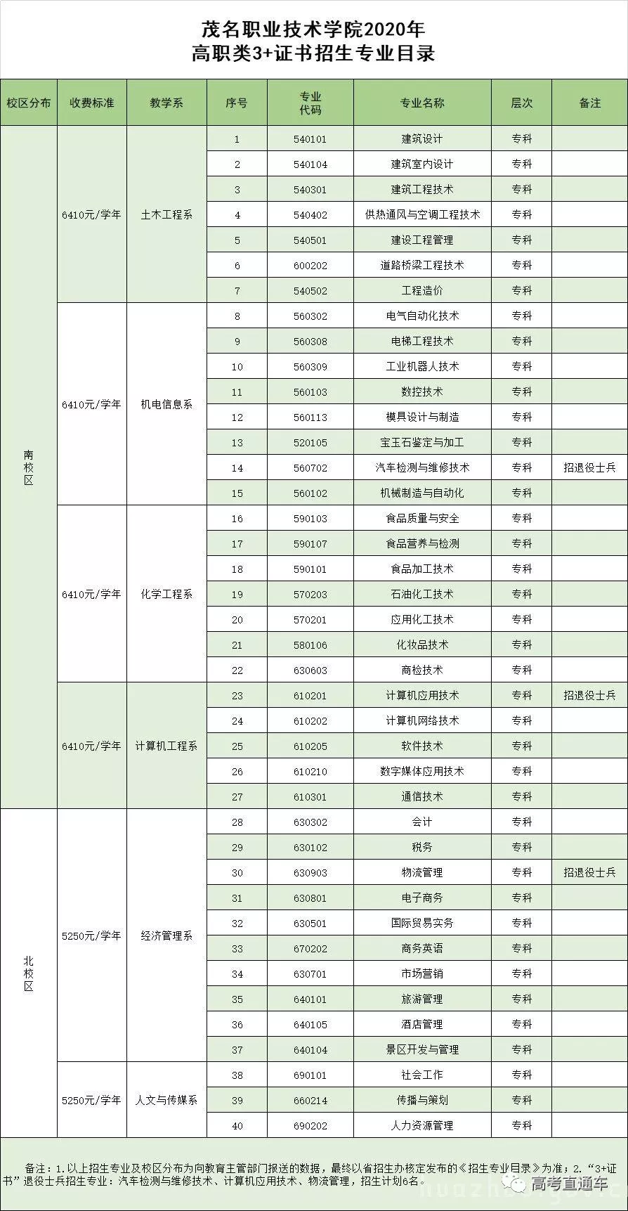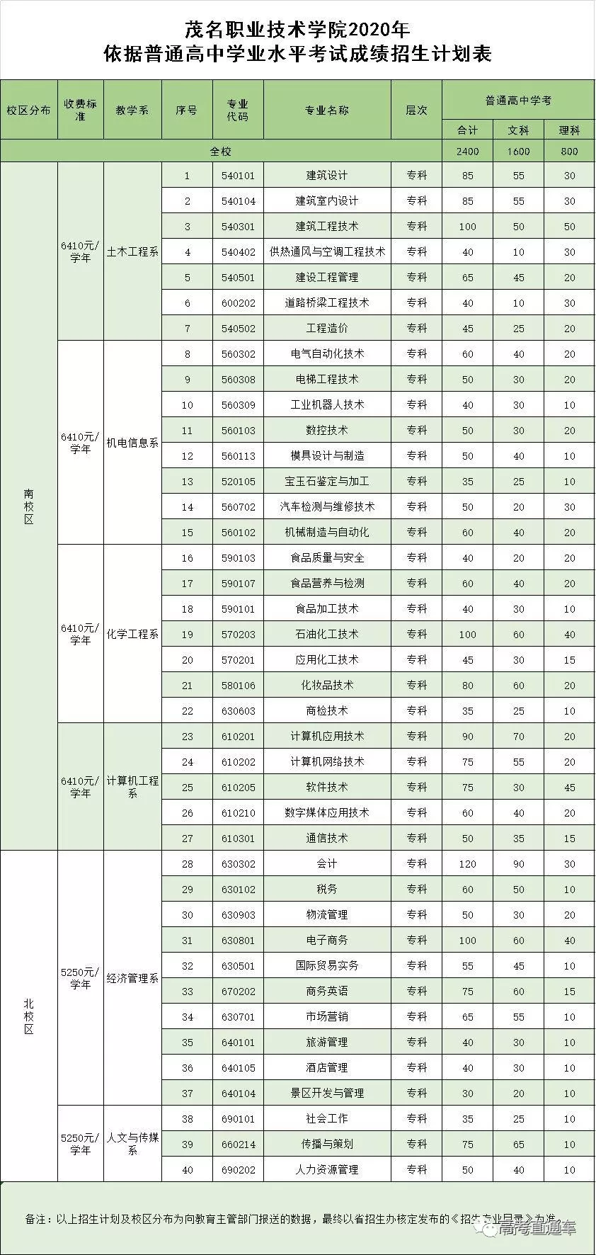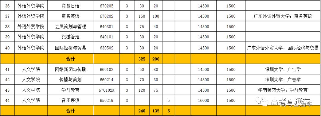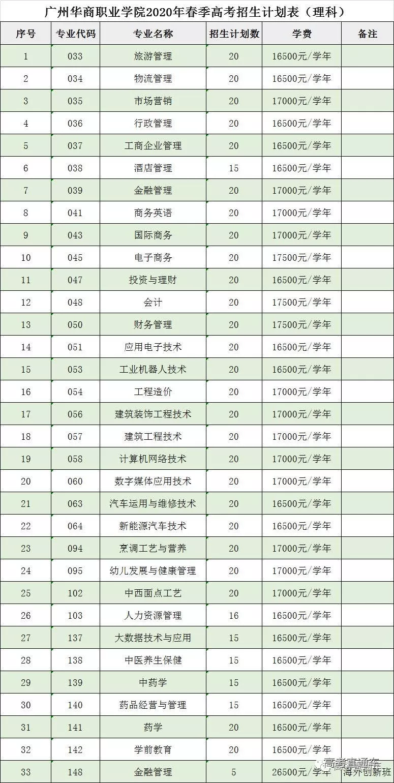 ②以下各招生专业、专业代号、计划数、专业身体限制等及其它备注以广东省招生办公布的专业目录为准;