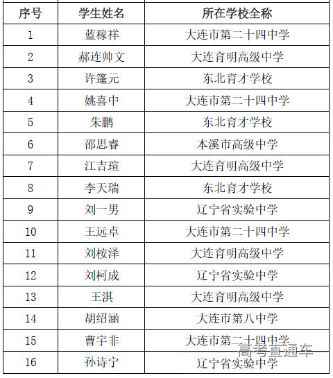 第36届全国中学生化学竞赛决赛省队名单(辽宁)