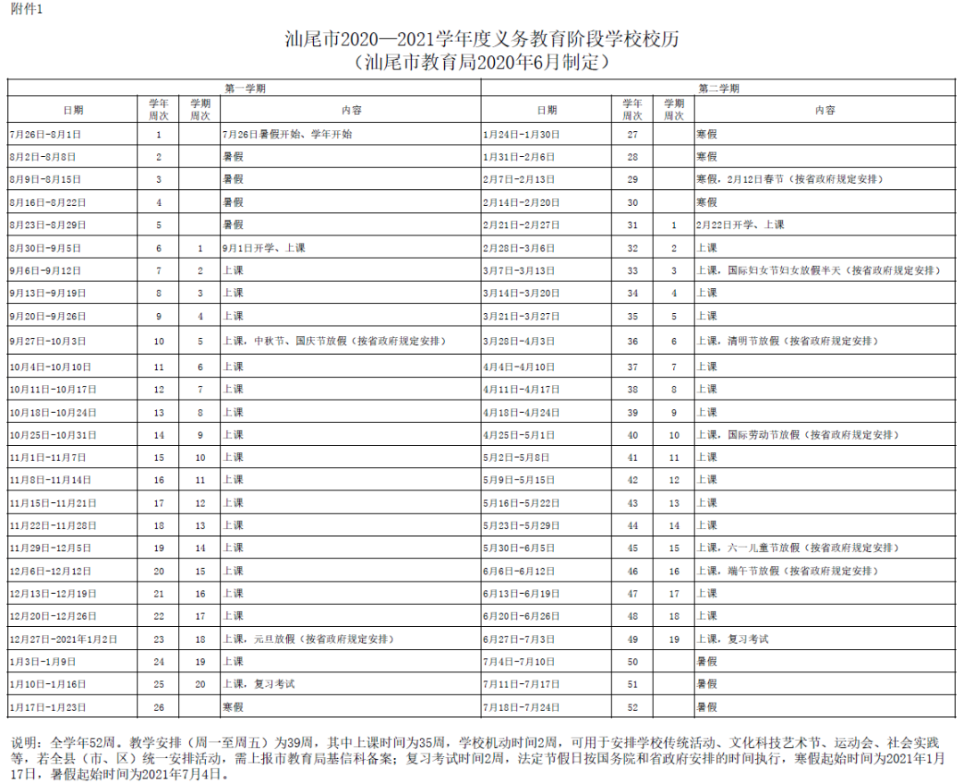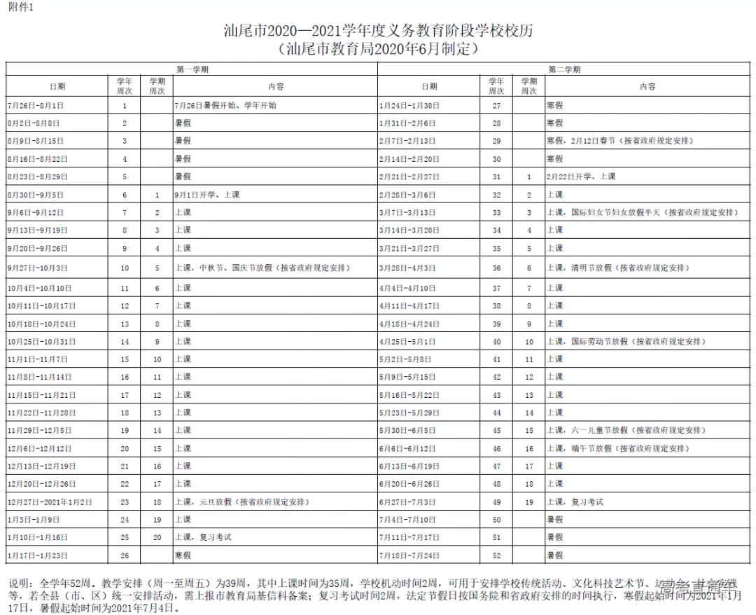 现将汕尾市2020-2021学年度普通中小学校校历公布如下,请各地教育行政部门和普通中小学校严格执行校历规定,不得随意更改日程安排。