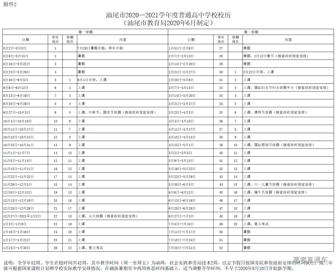 附件2.汕尾市2020-2021学年度普通高中学校校历