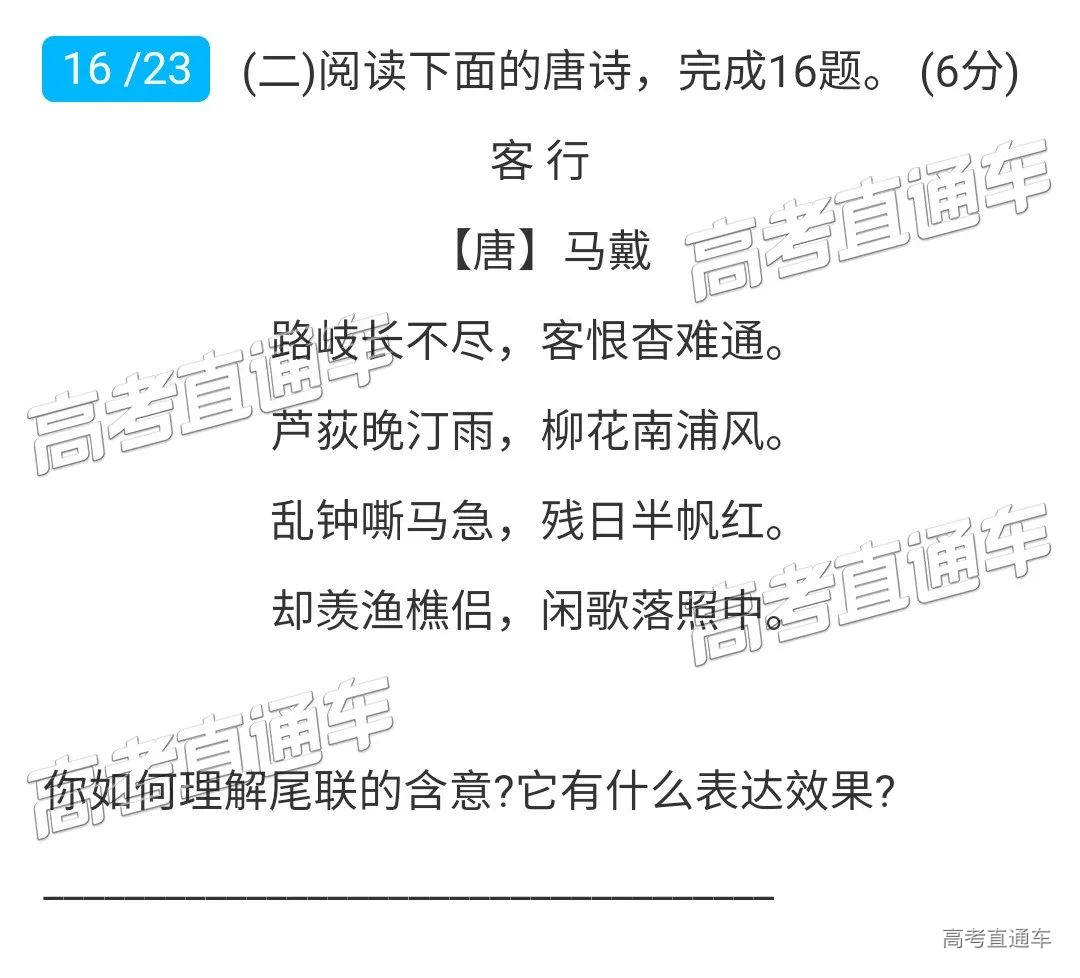 ①诗人漂泊在外,行色匆匆,沿途景色都给他一种凄凉之感;而渔夫樵夫却能够在夕阳下歌唱,安 逸悠闲,令人羡慕。(3 分)
