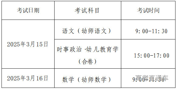 (2)教育类专业文化课考试科目及时间为: