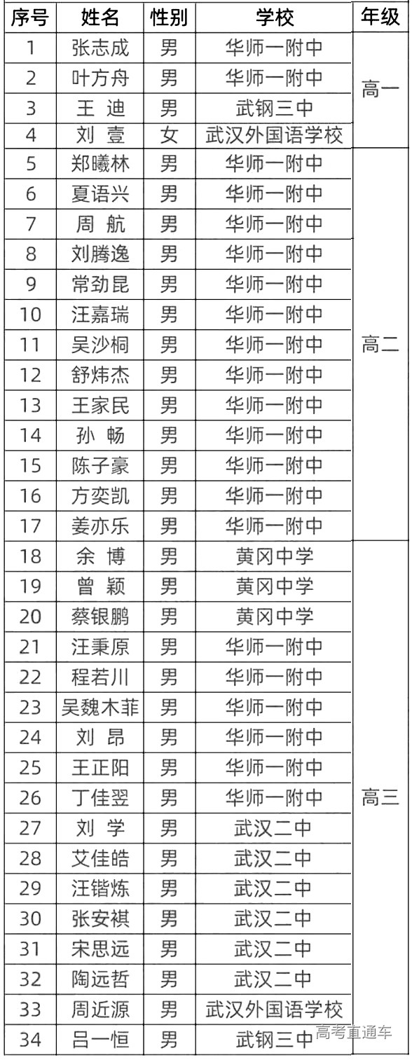 10月14日,湖北省2020年数学联赛获奖名单正式公布,小编同步更新湖北省2020年高中数学联赛省队获奖名单,共计34人,供大家查询。