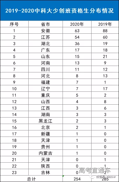 少年班、少创班针对全国招生,一般各省生源情况比较稳定,名校综合评价团队整理2019-2020年中科大少创班资格生省市分布,供考生家长报考参考。