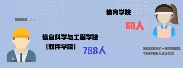 其中信息科学与工程学院(软件学院)新生人数最多,共788人,体育学院新生人数最少,共60人,机械类专业人数最多,达到691人。